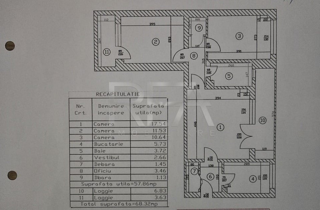 REA Imobiliare va ofera spre vanzare un apartament cu 3 camere, semidecomandat, situat în zona Alexandru Obregia, in vecinătatea bancii ING. Imobilul se afla intr-un bloc de apartamente, reabilitat, fara risc seismic, construit in anul 1966, la etajul 6/9, detine o suprafata totală de 68,3 m.p. din care suprafața utilă este 57,8 m.p. și balcoane în suprafață de 10,5 m.p. Locuinta este alcatuita din două dormitoare, un living, o bucatarie, o baie, două holuri și doua balcoane. Confortul termic este realizat de la reteaua de termoficare. In imediata apropiere se intalnesc puncte farmaceutice, medicale, comerciale, educationale, de divertisment, bancare, parcuri, etc. Accesul la mijloacele de transport in comun facil: 3 minute pana la statia de autobuz Aliorului sau 20 minute până la stația de metrou Aparatorii Patriei. Se accepta toate modalitatile de plata. Informatiile tehnice au caracter orientativ, acestea fiind preluate de la proprietari. Pentru mai multe detalii si vizionari, ne puteti contacta telefonic, specificand codul de identificare P5682 Id intern: P5682