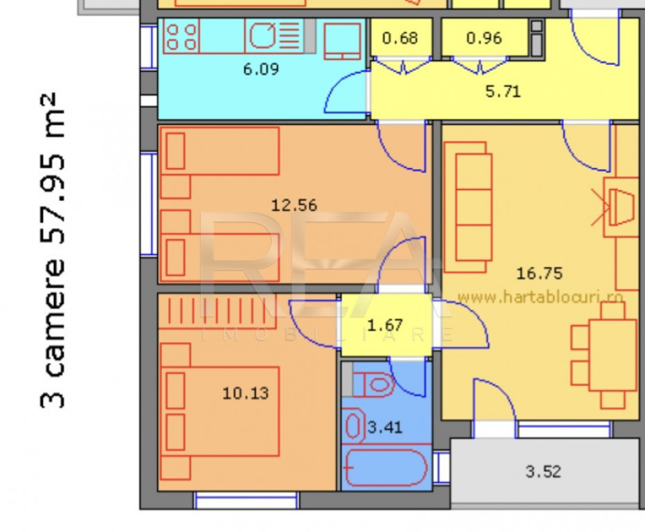 3 camere | 58 m² | Bucuresti-Ilfov / Bucuresti