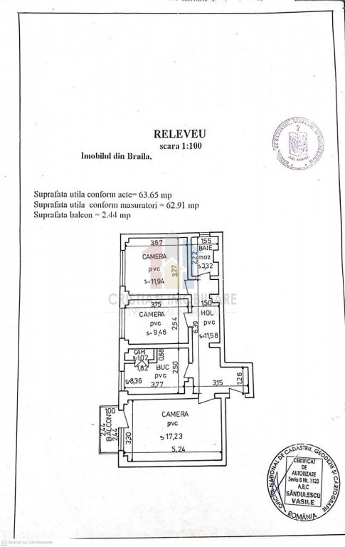 3 camere, confort 1 decomandat, 64 mp, Viziru 3