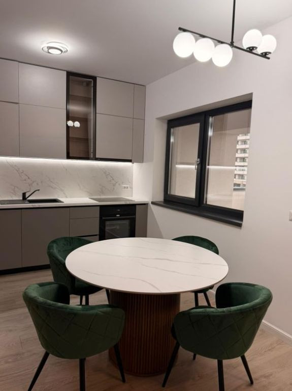 Va prezentam spre inchiriere un apartament modern cu 3 camere in Crystal North Pipera, pozitionat in partea de nord a Bucurestiului, la 300 m de centrul comercial Pipera Plaza. Apartamentul se afla la prima inchiriere si beneficiaza de un loc de parcare suprateran acoperit inclus in pret. Locuinta are o suprafata utila de 105 mp la care se adauga terasa de 10 mp - ideala pentru momentele de relaxare. Mobilierul de calitate, finisajele premium din cele 2 bai, bucataria complet echipata, cele 2 dormitoare confortabile si numeroasele spatii de depozitare sunt printre beneficiile de care se vor bucura noii chiriasi. Ansamblul rezidential dispune de curte interioara amenajata cu zone verzi, spatii de relaxare si locuri de joaca pentru copii, zone pentru sport si recreere, supravehere video si alarma de incendiu, acces controlat, iluminare nocturna, alei asfaltate. Accces rapid la arterele principale, centre comerciale mari (Baneasa Shopping City, Promenada Mall), restaurante, cafenele si zone de business. In apropriere exista scoli si gradinite apreciate (inclusiv internationale), ceea face aceasta pozitionare atractiva pentru familiile cu copii.