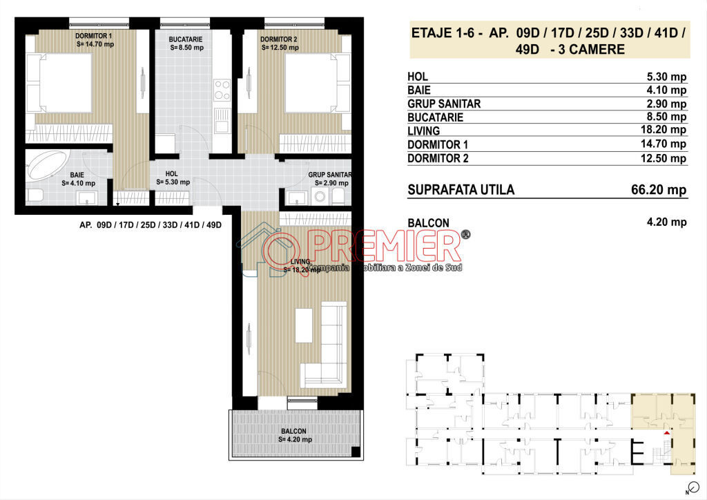 Premier Imobiliare vă propune spre vânzare un apartament de 3 camere, situat la etajul 1 din 6, cu o suprafață totală utilă de 70,40 mp – potrivit pentru o familie care își dorește spațiu, confort și siguranță. Preț promoțional: 100.500 EURO + TVA Avans 15% la antecontract, diferența la predare – termen finalizare martie 2026. Compartimentarea este practică și echilibrată: hol generos, 2 dormitoare, living spațios, bucătărie separată și baie echipată. Apartamentul se predă la cheie, cu toate branșamentele (Enel, Engie, Apa Nova) și beneficiază de izolație termică și fonică superioară. Locuri de parcare disponibile: Exterior – 8.000 € + TVA Subteran – 10.000 € + TVA Construcție pe cadre din beton armat, aproape de stația STB 241, la 10 minute de Parcul Tudor Arghezi și 7 minute de Kaufland / Lidl, cu acces rapid la școli, grădinițe, farmacii și spitale. Oferim asistență completă pentru credit bancar. Poze cu caracter informativ. Pentru detalii și programarea unei vizionări: Alexandru Sorin – 0731 510 845 Detalii zona: - Statie STB - 10 minute pietonale Parcul Tudor Arghezi - 7 minute pietonale Kaufland - Lidl - 10 minute pietonale Grand Arena Mall Serviciul nou oferit de PREMIER Imobiliare! Solicita acum VIZIONARE ONLINE pentru aceasta proprietate! COMISION 0% Această proprietate se poate achiziționa prin orice tip de credit bancar. Departamentul nostru financiar Premier Credit Hub vă stă la dispoziție GRATUIT (comision 0%) pentru: - identificarea celei mai bune soluții de finanțare; - întocmirea dosarului bancar complet; - obținerea rapidă a creditului necesar achiziției. Beneficiați de un serviciu ALL IN ONE, cu acces direct la ofertele tuturor băncilor comerciale din România. Se acceptă inclusiv venituri din străinătate, astfel încât fiecare client să poată cumpăra în cele mai avantajoase condiții. Solicitați acum o simulare de credit direct din anunț sau cereți detalii consultantului Premier Imobiliare!