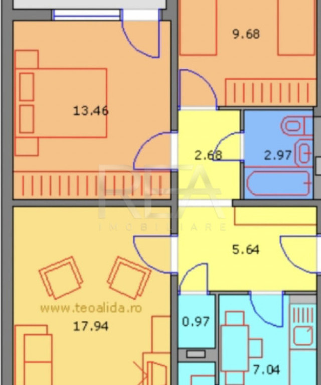 3 camere | 62 m²