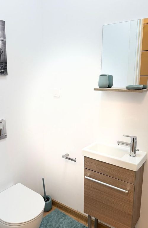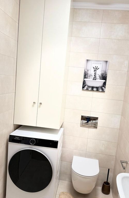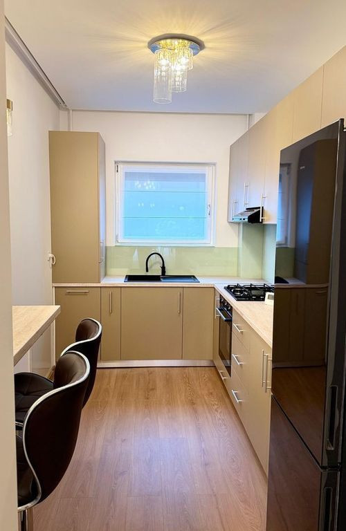 Aflat la prima inchiriere, apartamentul dispune de mobilier modern, iar bucataria este complet echipata (inclusiv masina de spalat vase).