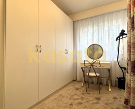 Dormitorul este liniștit și bine proporționat, iar cea de-a doua cameră este organizată ca dressing – ideal pentru cineva care apreciază ordinea sau pentru cei care lucrează de acasă și au nevoie de un birou separat.