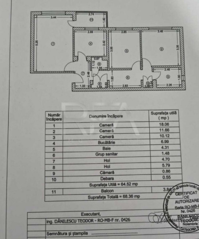 R.E.A. Imobiliare vă propune spre vânzare un apartament cu 3 camere situat în cartierul Berceni in imediata apropiere de metroul Aparatorii Patriei. Imobilul se află situat la etajul 1/4, bloc construit în anul 1987, pe structură de beton, nu figurează la risc seismic. Se afla pe o strada cu sens unic cu trafic redus fara a fi expus la bulevard. Locuința este compusă din: cameră – 18,06 m.p., cameră – 11,66 m.p., cameră – 10,12 m.p., bucătărie – 6,99 m.p., baie – 4,31 m.p., grup sanitar – 1,48 m.p., hol – 4,70 m.p., hol – 5,79 m.p., cămară – 0,86 m.p., debara – 0,55 m.p., balcon – 3,84 m.p. Suprafața Totală – 68,36 m.p., din care 3,84 m.p. reprezintă balconul. (SU – 64,52 m.p.) Apartamentul se vinde parțial mobilat. Instalatii sanitare schimbate, usi schimbate. Confortul termic este realizat prin intermediul RADET. Gazele sunt contorizate in regim propriu, se poate monta centrala termica. În imediata apropiere se regăsesc: Kaufland Ion Iriceanu, Mega Image, LIDL, Școala 133, DIGI, BCR, Banca Transilvania, oficiu postal si altele; Statia Aparatorii Patriei se afla la 350m distanta - 4-5 minute de mers usor. Pentru mai multe detalii și programarea unei vizionări, vă rugăm să ne contactați telefonic, specificând codul de identificare P10258. Id intern: P10258