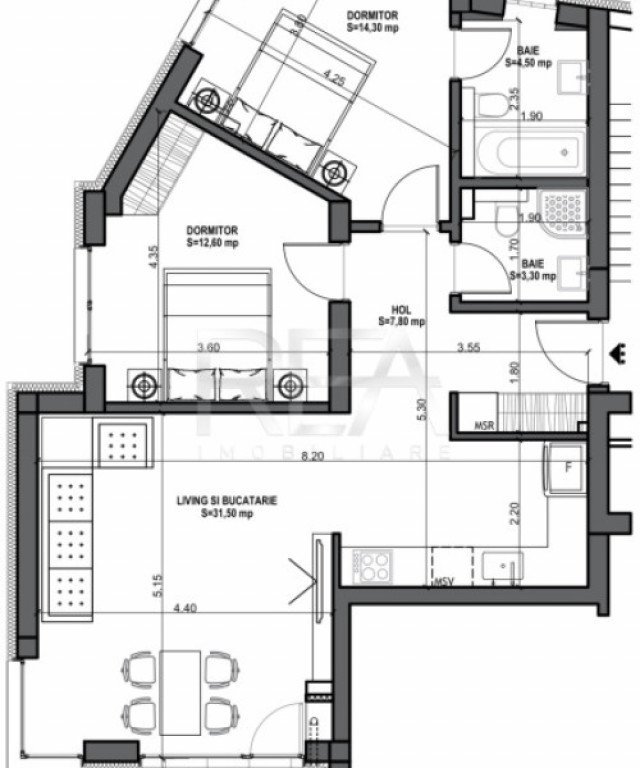 R.E.A. Imobiliare Apartament 3 camere, decomandat, orientat NORD - VEST, cu FINISAJE LA ALEGERE, la etajul 1 al unui imobil format din parter + 5 etaje + 2 etaje retrase, în zona Mosilor, la doar câțiva pași de strada Mihai Eminescu si Bulevardul Dacia, cu acces rapid atât către Obor, cât și către Universitate. Acces rapid la transport public: 3 minute pana la statiile STB, 8 minute pana la metrou Obor. Termen de finalizare 31 Mai 2026 - Suprafață totală de 81,40 mp: 74 mp utili+ 7,40 mp balcon. - Configurație: 2 dormitoare, living, bucătărie, hol, 2 bai si balcon. - Incalzire prin pardoseala Tecce Germania, centrala proprie. - Parcare subterană tip Klaus independent 30.000 EUR+TVA / loc. Informatii suplimentare: - Parchet din lemn stratificat; - Ceramica perete / pardoseala in bai si parti comune, fabricatie Italia; - Obiectele sanitare gama moderna Rocca, accesorii HansGrohe; - Accesorii electrice Bticino prize / intrerupatoare, gama Premium; - Usi interior MDF pantografate, cu toc plan si pervaz drept, cu broasca magnetica, Pinum fabricatie Italia; - Usa intrare apartament metalica, blindata cu inchideri multipunct si balamale ascunse, Pinum fabricatie Italia; - Tamplarie PVC cu sticla termoizolanta tripan Salamander Blue Edition; - Inchiderile perimetrale si compartimentarile dintre apartamente din caramida Wienerberger de 36cm, iar compartimentarile interioare tot din caramida Wienerberger de 15cm; - Fatada ventilata: vata bazaltica 15cm, alucobond plus fibrociment; - Acces securizat in cladire, videointerfon si supaveghere video perimetrala si spatii comune. Pentru detalii și vizionări, contactați-ne specificând codul de identificare P5026. Id intern: P5026
