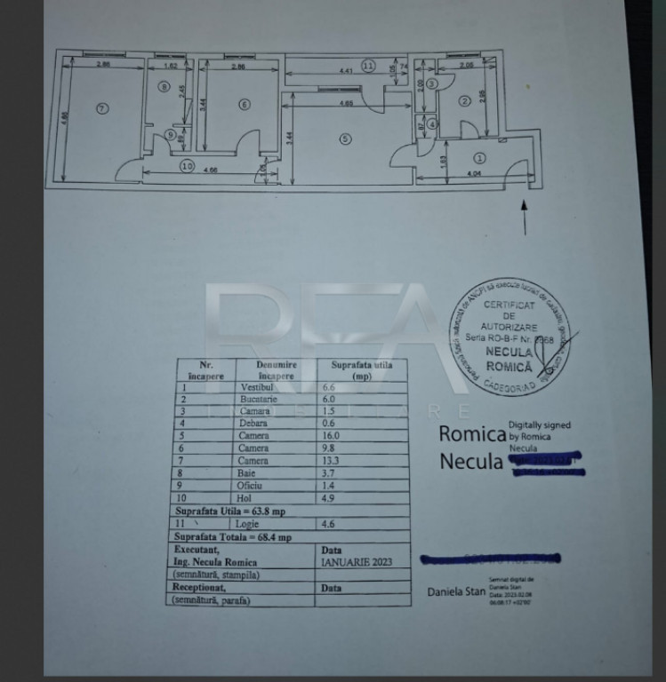 R.E.A. Imobiliare va propune spre vanzare un apartament semidecomandat cu 3 camere in zona bulevardului Brancoveanu in imediata apopiere a scolii 108. Imobilul se afla la etajul 1 din 4 al unui bloc de apartamente construit pe structura de beton (panouri prefabricate) in 1969, nu figureaza pe lista de risc, urmeaza a fi reabilitat, blocul vecin este acum in reabilitare. Locuinta este compusa din: vestibul, bucatarie, living, doua dormitoare, o camara, o debara, un hol si un sas, baie cu geam si balcon. Suprafata totala este de 68,40mp din care 4,60mp reprezinta balconul. Suprafata utila este de 63,80mp. Apartamentul se vinde mobilat si utilat. 1 loc de parcare inchiriat la ADP. Ultima renovare s-a facut in 2024. In imediata apropiere regasim: Scoala 108, gradinita, cresa, puncte bancare, restaurante/terase, PETROM, locuri de joaca pentru copii; Acces facil la mijloace de transport in comun: 1-2 minute pana la statia STB (Linia 116, 141, 216). Confortul termic este realizat prin intermediul RADET. Pentru mai multe detalii si vizionari ne puteti contacta mentionand codul proprietatii: P8921 Id intern: P8921
