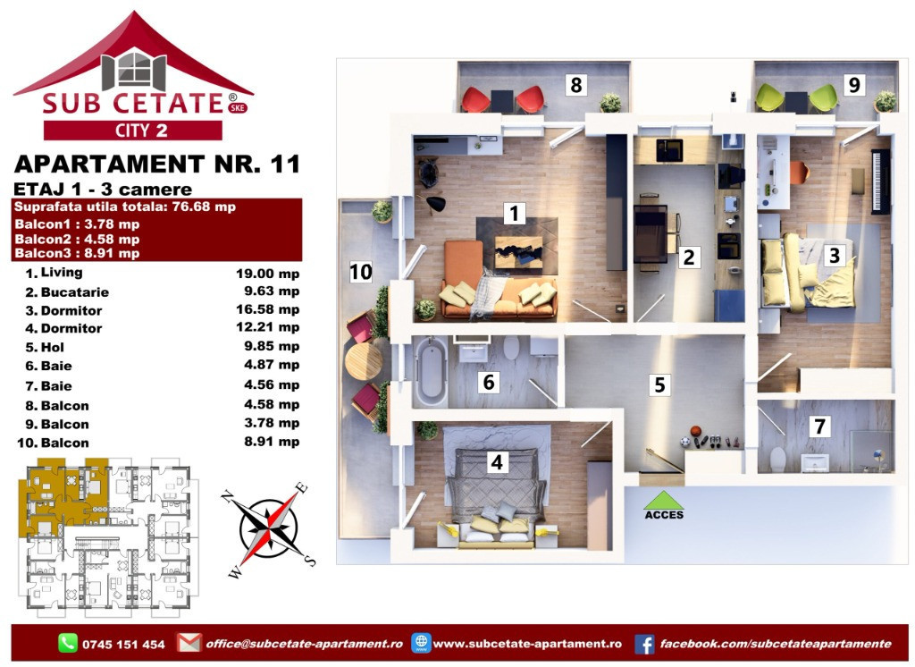 Subcetate Green Residence complex rezidential cu peste 2000 de apartamente, de 1, 2 si 3 camere, destinate tuturor categoriilor de varsta.locatia este o zona adiacenta a brasovului, la 3 minute de complexul comercial coresi in vecinatatea unui cartier de vile, functional si la aproximativ 5-10 minute de centrul brasovului.complexul este construit pe malul unei ape curgatoare, iar panorama deosebita a muntilor care va incanta privirea noilor proprietari este unul din atu-urile noastre. pe langa integrarea perfecta in zona, complexul rezidentual beneficiaza de toate facilitatile, utilitatile, inclusiv spatii comerciale in incinta,locuri de joaca pentru copii,spatii verzi si zona de relaxare.in aceasta zona a orasului am construit 33 vile si alte 18 vile moderne care sunt in faza de proiect vor indeplini toate standardele de calitate si siguranta. cartierul se afla la mica distanta de noul centru comercial coresi shopping center care este realizat de immochan, divizia de real estate a grupului francez auchan si cuprinde un hipermarket auchan de 16. 000 mp - cel mai mare din transilvania, un centru comercial de 25.000 mp inchiriabili si o parcare de 3.000 de locuri. asadar cine va alege sa devina proprietar al unui imobil situat in noul cartier subcetate green residence va avea la dispozitie toate facilitatile zonei liniste si totodata departe de galagia urbana specifica.