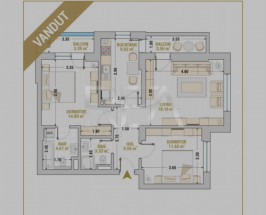 Suprafață totală: 74,17 mp, Suprafață utilă: 67,27 mp, Suprafață balcoane: 6,90 mp