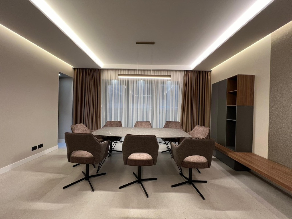 Apartament 3 camere de lux – Șoseaua Nordului 96U, Nordis Residence Complet mobilat și utilat – loc parcare disponibil Apartament de lux cu 3 camere și 2 băi, situat la parterul ansamblului exclusivist Nordis Residence, pe Șoseaua Nordului nr. 96U, una dintre cele mai prestigioase zone rezidențiale din București, chiar lângă Parcul Herăstrău. Locuința are o suprafață totală de 138 mp, din care 115 mp utili interiori și 3 terase în suprafață de 9 mp, 7 mp și 7 mp, oferind un spațiu generos, luminos și perfect echilibrat între interior și exterior. Apartamentul este complet mobilat și utilat la cheie, cu mobilier de designer, electrocasnice premium și finisaje de cea mai înaltă calitate. Cele două băi sunt amenajate modern, iar zona de zi se deschide elegant către terase, oferind o atmosferă relaxată și rafinată. Loc de parcare disponibil. Amplasat într-un imobil de referință, Nordis Residence oferă confort, siguranță și intimitate, fiind situat la câțiva pași de restaurantele fine din zona Herăstrău (Casa di David, Biutiful by the Lake, Carnivale Food Market), centre sportive și de wellness (Pescariu Sports & Spa, World Class), precum și de școli și grădinițe internaționale. O alegere ideală pentru cei care își doresc o locuință elegantă, complet echipată, într-o zonă de top a Bucureștiului – perfectă pentru un stil de viață urban sofisticat.
