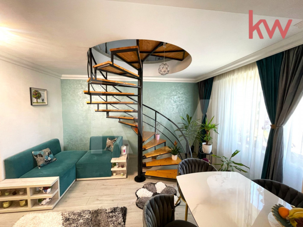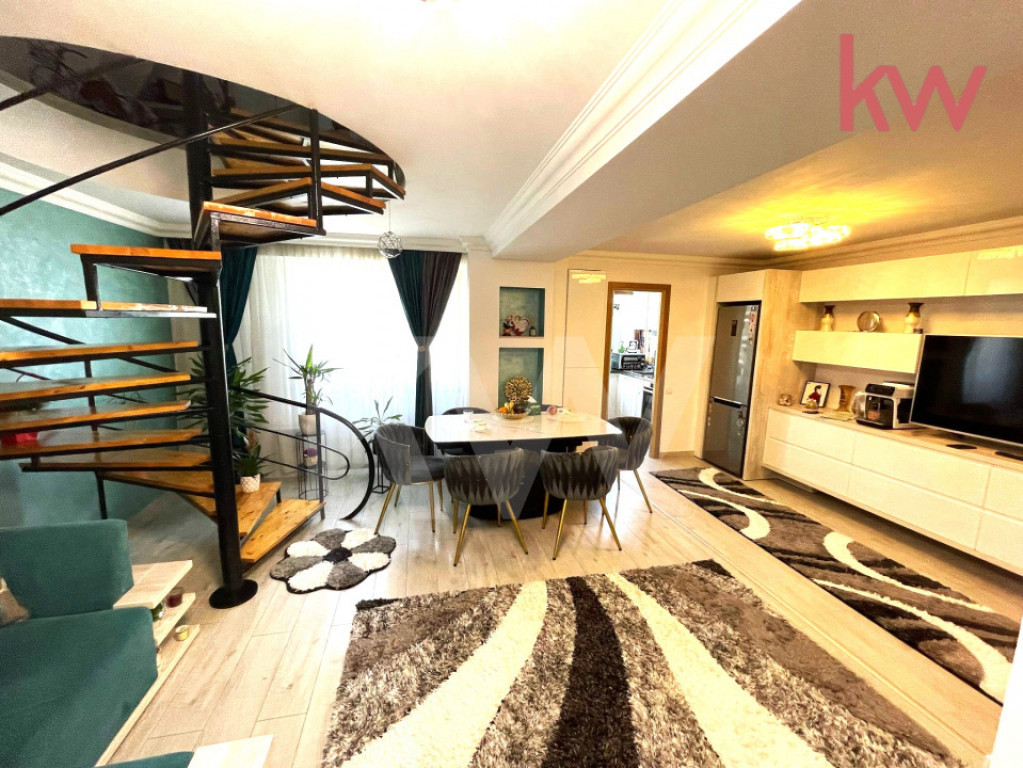Hai să te îndrăgostești de acest Penthouse cu 3 Camere, lângă Promenada Mall! Un apartament tip duplex, modern și luminos, te așteaptă să devină „acasă” chiar din prima zi. Situat într-un bloc nou (P+4), într-o zonă liniștită și exclusivistă din Craiova, îți oferă combinația perfectă între confort și stil de viață urban. Două niveluri pline de surprize: Etaj 3: living spațios unde te relaxezi în voie, bucătărie complet utilată cu electrocasnice premium și o baie elegantă. Etaj 4: două dormitoare luminoase, fiecare cu baie proprie și mobilier de top. Momentul tău preferat? Terasa panoramică – locul unde savurezi cafeaua de dimineață sau serile cu prietenii sub cerul liber. Extra beneficii: finisaje moderne, scară interioară chic, încălzire prin pardoseală, tâmplărie Salamander, aer condiționat și acoperiș din țiglă. Apartamentul este disponibil imediat – programează o vizionare și bucură-te de vibe-ul unui cămin unic! Id intern: P9474