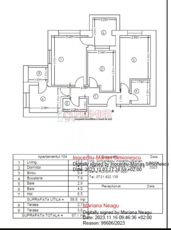 ???? 3 Camere | Bloc Nou 2023 | Șos. Olteniței | Parcare Subterană | Mobilat & Utilat | 200.000 € ???? Adresă: Șos. Olteniței, Sector 4 – București ???? Suprafață utilă: 67 mp ???? Balcoane: 9 mp ???? An construcție: 2023 ???? Etaj: 1 / P+6 ???? Loc de parcare subteran (-1) inclus ???? Preț: 200.000 € negociabil Locuința este decomandată, complet mobilată și utilată, cu mobilier modern, nou, și finisaje de foarte bună calitate. Se vinde exact ca în prezentare – ideal pentru mutare imediată. ???? Compartimentare: Living spațios 2 dormitoare Bucătărie închisă, mobilată și echipată 2 băi 2 balcoane (9 mp total) ???? Dotări & finisaje: ✔ Centrală proprie – încălzire pe gaz ✔ Aer condiționat ✔ Ușă metalică ✔ Parchet laminat, gresie, faianță ✔ Lift ✔ Clasă energetică A ✔ Contorizare individuală (gaz, curent, apă) ???? Detalii imobil: Construcție pe cadre din beton și cărămidă Izolație exterioară cu polistiren extrudat Terasă circulabilă Stare imobil: Excepțională Confort I ???? Localizare excelentă: În apropiere: magazine, piață, școală, grădiniță, parc, transport public și metrou. ???? Acte în regulă – contract vânzare-cumpărare, persoană fizică, fără sarcini. ???? Imobil locuit – vizionări cu programare prealabilă. ???? Nu rata această oportunitate! Un apartament nou, complet mobilat, cu parcare subterană inclusă, într-o zonă excelentă din Sector 4 – pregătit pentru mutare imediată. ???? Sună acum și programează o vizionare! Adrian Cantia ☎ 0731 510 854 Acum este momentul potrivit să faci pasul către noua ta locuință! ????✨ Detalii garaj: subteran Serviciul nou oferit de PREMIER Imobiliare! Solicita acum VIZIONARE ONLINE pentru aceasta proprietate! COMISION 0% Această proprietate se poate achiziționa prin orice tip de credit bancar. Departamentul nostru financiar Premier Credit Hub vă stă la dispoziție GRATUIT (comision 0%) pentru: - identificarea celei mai bune soluții de finanțare; - întocmirea dosarului bancar complet; - obținerea rapidă a creditului necesar achiziției. Beneficiați de un serviciu ALL IN ONE, cu acces direct la ofertele tuturor băncilor comerciale din România. Se acceptă inclusiv venituri din străinătate, astfel încât fiecare client să poată cumpăra în cele mai avantajoase condiții. Solicitați acum o simulare de credit direct din anunț sau cereți detalii consultantului Premier Imobiliare!