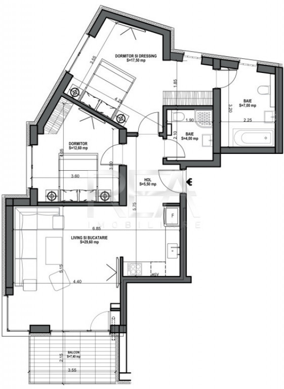R.E.A. Imobiliare Apartament 3 camere, decomandat, orientat NORD - VEST, cu FINISAJE LA ALEGERE, la etajul 4 al unui imobil format din parter + 5 etaje + 2 etaje retrase, în zona Mosilor, la doar câțiva pași de strada Mihai Eminescu si Bulevardul Dacia, cu acces rapid atât către Obor, cât și către Universitate. Acces rapid la transport public: 3 minute pana la statiile STB, 8 minute pana la metrou Obor. Termen de finalizare 31 Mai 2026 - Suprafață totală de 83,60 mp: 76,20 mp utili+ 7,40 mp balcon. - Configurație: 2 dormitoare, living, bucătărie, hol, 2 bai si balcon. - Incalzire prin pardoseala Tecce Germania, centrala proprie. - Parcare subterană tip Klaus independent 30.000 EUR+TVA / loc. Informatii suplimentare: - Parchet din lemn stratificat; - Ceramica perete / pardoseala in bai si parti comune, fabricatie Italia; - Obiectele sanitare gama moderna Rocca, accesorii HansGrohe; - Accesorii electrice Bticino prize / intrerupatoare, gama Premium; - Usi interior MDF pantografate, cu toc plan si pervaz drept, cu broasca magnetica, Pinum fabricatie Italia; - Usa intrare apartament metalica, blindata cu inchideri multipunct si balamale ascunse, Pinum fabricatie Italia; - Tamplarie PVC cu sticla termoizolanta tripan Salamander Blue Edition; - Inchiderile perimetrale si compartimentarile dintre apartamente din caramida Wienerberger de 36cm, iar compartimentarile interioare tot din caramida Wienerberger de 15cm; - Fatada ventilata: vata bazaltica 15cm, alucobond plus fibrociment; - Acces securizat in cladire, videointerfon si supaveghere video perimetrala si spatii comune. Pentru detalii și vizionări, contactați-ne specificând codul de identificare P9086. Id intern: P9086