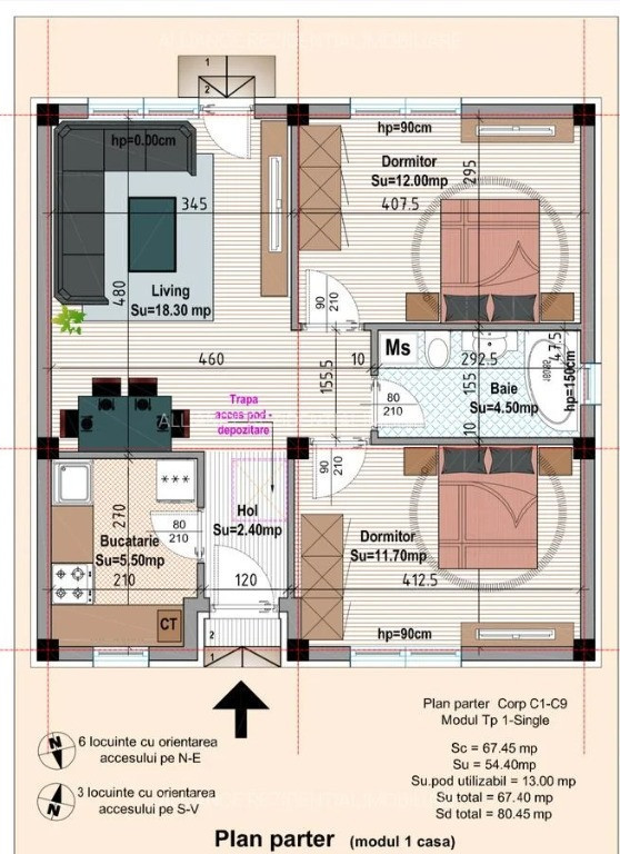 2 Dormitoare Bucătărie închisă Baie modernă Hol generos Pod cu placă de beton (13.20 mp) Suprafațe: Living: 18.30 mp cu ieșire către curte (aprox. 100 mp) Dormitor 1: 12 mp Dormitor 2: 11.70 mp Baie: 4.50 mp Bucătărie închisă: 5.50 mp Hol: 2.40 mp Pod utilizabil: 13 mp Locuri de parcare: 2 incluse Curte: 135 mp Toate utilitățile incluse La doar 2 minute de stația STB, legătură directă cu metrou Piața Sudului. Acces rapid către Sector 3. Termen de finalizare: Iunie 2025