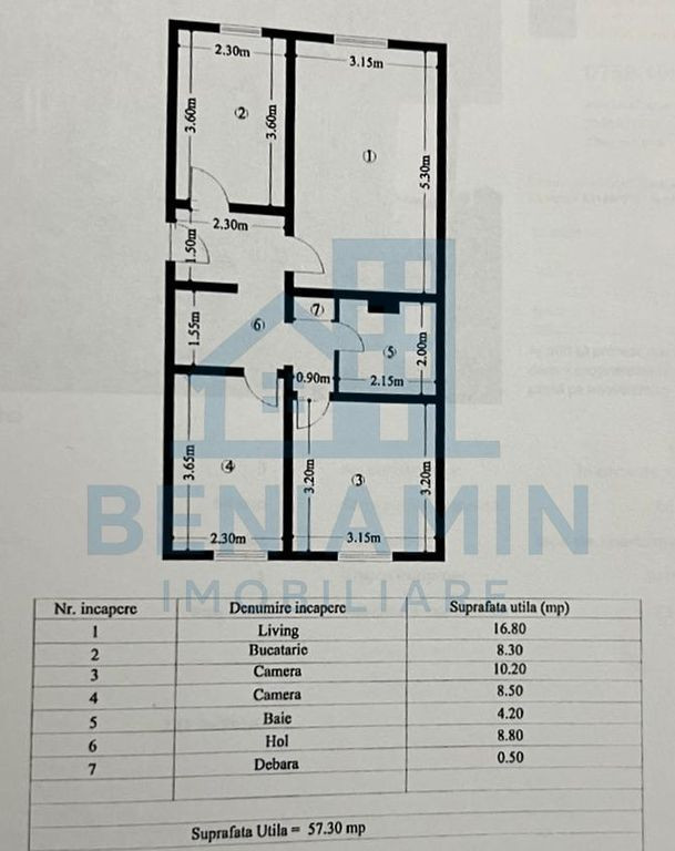 Suprafața utilă 57 m²