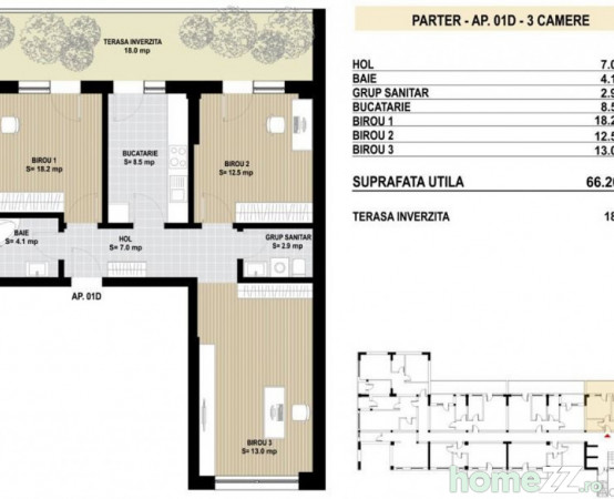 Apartament compus din 3 camere si dependinte, decomandat, cu predare la cheie(g,f,p, obiecte sanitare, centrala termica proprie, incalzire prin pardoseala), contorizare individuala pentru utilitati(apa, energie electrica, gaze), internet(fibra optica) si cabluTV.
