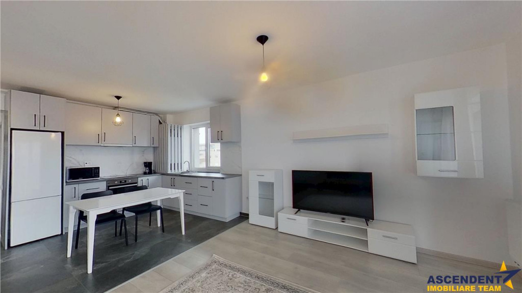 Comision chirias: 50% tva, din contravaloarea unei chirii lunare, o singura data. Ascendent Imobiliare va propune spre inchiriere un apartamentul situat la etajul 7 ce beneficiaza de vedere frumoasa catre muntii din imprejurimi, vis-a-vis de Centrul comercial Coresi Shoping Center. Va invitam sa experimentati o vizionare initiala, din locatia unde va aflati, chiar acum, prin accesarea turului virtual Tur virtual tridimensional: https://my.matterport.com/show/?m=pH4DgizCDXP Este o rezidenta moderna,structura openspace ce imbina perfect confortul si functionalitatea asfel incat sa ai un confort sporit cat timp locuiesti in acest imobil. Dispune de un dormitor spatios cu iesire pe terasa, un living luminos cu iesire pe balcon, o baie mare cu cbina de dus, un hol mare openspace ce leaga imobilul la intrare cu zona de livinng dar si cu dormitorul, deasemeni bucataria si un spatiu de depozitare suplimentar. Imobilul este mobilat si utilat asigurand astfel un plus de calitate si eficienta Completeaza oferta excelenta infrastructura locala, putandu-se accesa in doar cateva minute numeroase puncte de interes: parc, mijloace de tranport,mall, club,gradinita,scoli, restaurante, centru sportive si de agrement, etc. Proprietatea este disponibila la vizionari cu programare telefonica, desigur ca particularitatea ofertei, invita la cunoasterea in detaliu prin accesarea turului virtual dar si prin vizionarea acestuia. Consilier specializat pe aleasa oferta: domnul Anghel Livius Telefon/ WhatsApp: 0767465686 Detalii, fotografii suplimentare si alte variante similare exclusive: www.ascendentimobiliare.ro