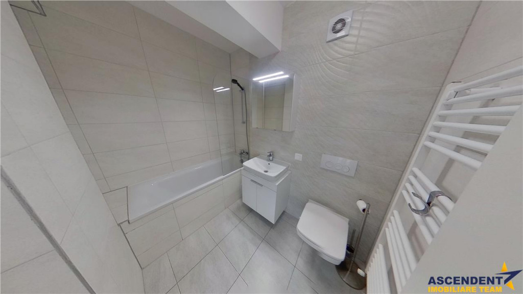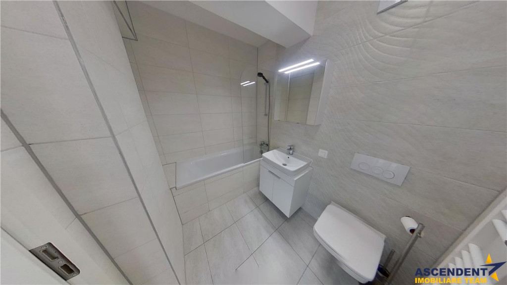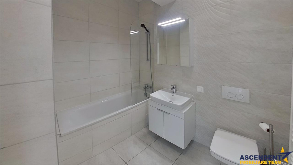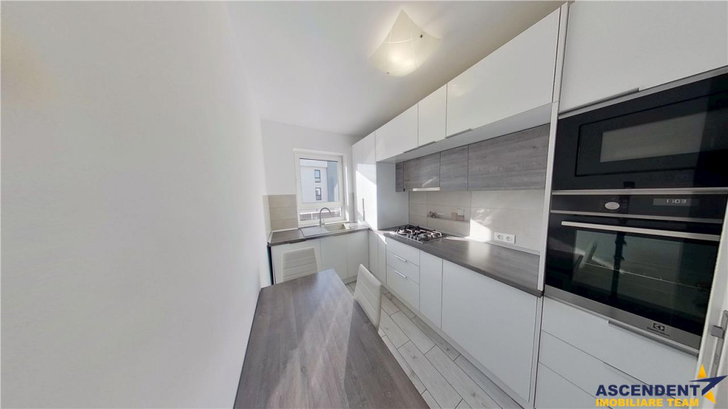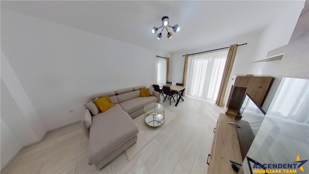 Comision chirias: 50% TVA din contravaloarea unei chirii lunare, o singura data. ASCENDENT IMOBILIARE va propune, in exclusivitate, un apartament modern cu trei camere, decomandat, expunere spre sud cu o vedere spectaculoasa catre Tampa, avand suprafata utila de 59 mp si o suprafata totala de 66 mp, amplasat in zona Avantgarden Bartolomeu, Brasov. Va invitam sa experimentati o vizionare initiala, din locatia unde va aflati, chiar acum, prin accesarea turului virtual: Tur virtual tridimensional: https://my.matterport.com/show/?m=M5PJu7kPx84 Proprietatea este compartimentata eficient si ofera confortul necesar unui stil de viata echilibrat. Dispune de un living spatios, bucatarie inchisa, doua dormitoare, un dormitor matrimonial si un al doilea dormitor dotat cu canapea extensibila, care poate fi amenajat ca dormitor al copilului, birou sau dressing, in functie de preferintele viitorului chirias, baie, balcon, boxa, loc de parcare, terasa de 7,2 mp - ce ofera un loc perfect pentru relaxare si timp petrecut in aer liber. Imobilul este situat intr-o zona apreciata, cu acces facil catre centre comerciale, scoli, gradinite, statii de transport in comun si alte puncte de interes. Rezidenta se remarca prin finisaje de calitate iar pozitionarea la etajul 4 confera luminozitate si o priveliste placuta. Pentru mai multe informatii si programarea unei vizionari, contactati: Doamna Carmen Vasile Telefon / WhatsApp: 0745 684 328 Fotografii, detalii suplimentare si alte oferte similare disponibile pe: www.ascendentimobiliare.ro