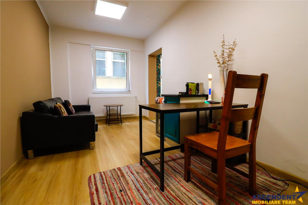 Comision cumparator: 2% tva, din valoarea de tranzactionare. ASCENDENT IMOBILIARE este onorata sa va propuna spre vanzare un spatiu cu alta destinatie, amplasat intr-un complex rezidential, intr-o zona linistita si sigura, respectiv pe strada Avram Iancu, beneficiind de acces securizat. Desi nu este stradal, pozitionarea ofera intimitate si confort, ceea ce il face perfect pentru activitati ce necesita un mediu profesional si discret. Proprietatea este structurata pe 3 incaperi, cu doua intrari separate. Va invitam sa experimentati o vizionare initiala, pentru doua incaperi, din locatia unde va aflati, chiar acum, prin accesarea tur-ului virtual tridimensional: https://my.matterport.com/show/?m=UZVDXuhowtz Interiorul este modern, luminos si ergonomic, compartimentare flexibila, adaptabila in functie de specificul activitatii. Podeaua din lemn deschis, peretii cu design contemporan si spatiile deschise creeaza o atmosfera primitoare si productiva. Unitatile sunt recomandate pentru birouri de contabilitate, IT sau consultanta, dar la fel de potrivit pentru cabinete psihologice, de coaching, activitati de wellness, yoga, pilates, fitness personalizat, studio foto-video, showroom, traininguri sau cursuri private. Accesul facil in cadrul complexului, alaturi de siguranta oferita de sistemul de intrare controlata, transforma aceasta oferta intr-o alegere excelenta pentru antreprenori si profesionisti care isi doresc sa ofere clientilor sau colaboratorilor un mediu profesional, discret si modern. Consiler specializat pe aleasa oferta: doamna Daniela Lungu Telefon/ WhatsApp: 0749 885 481 Detalii, fotografii suplimentare si alte oferte similare exclusive: www.ascendentimobiliare.ro