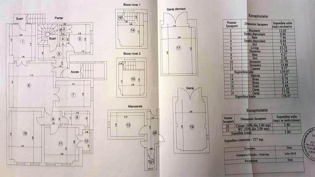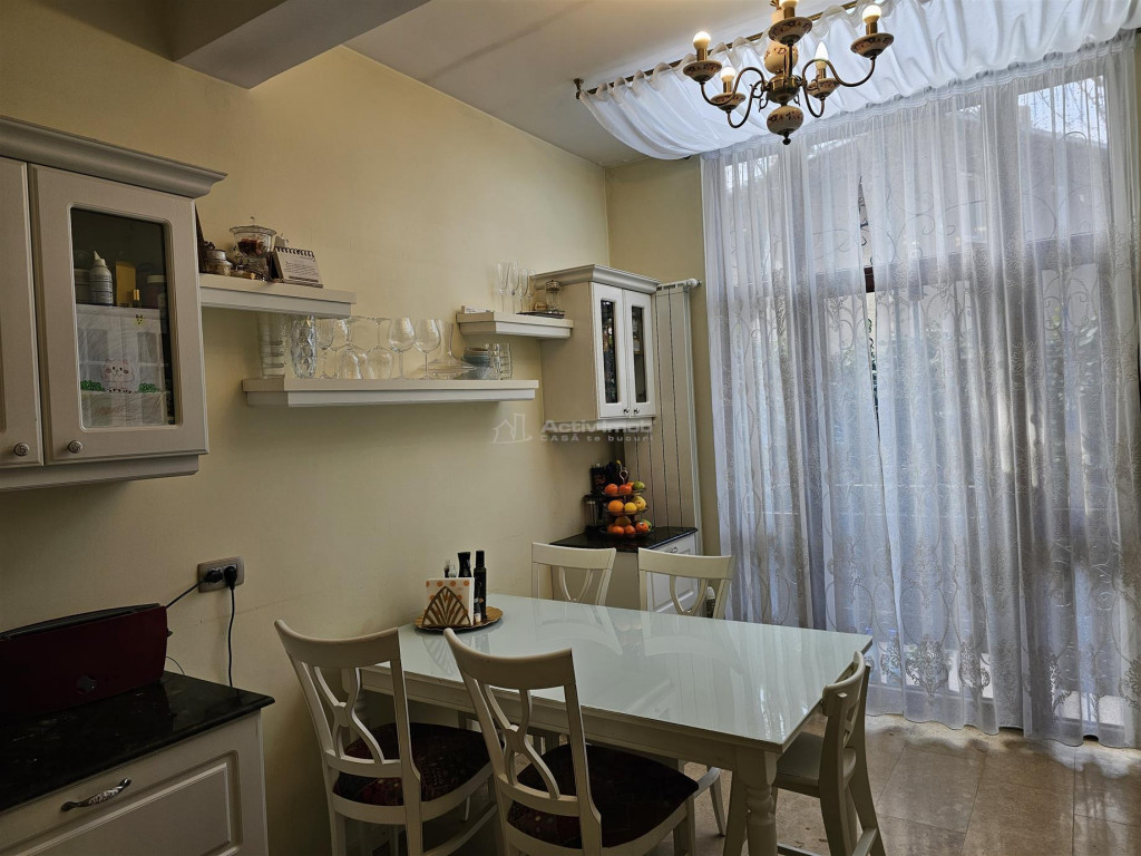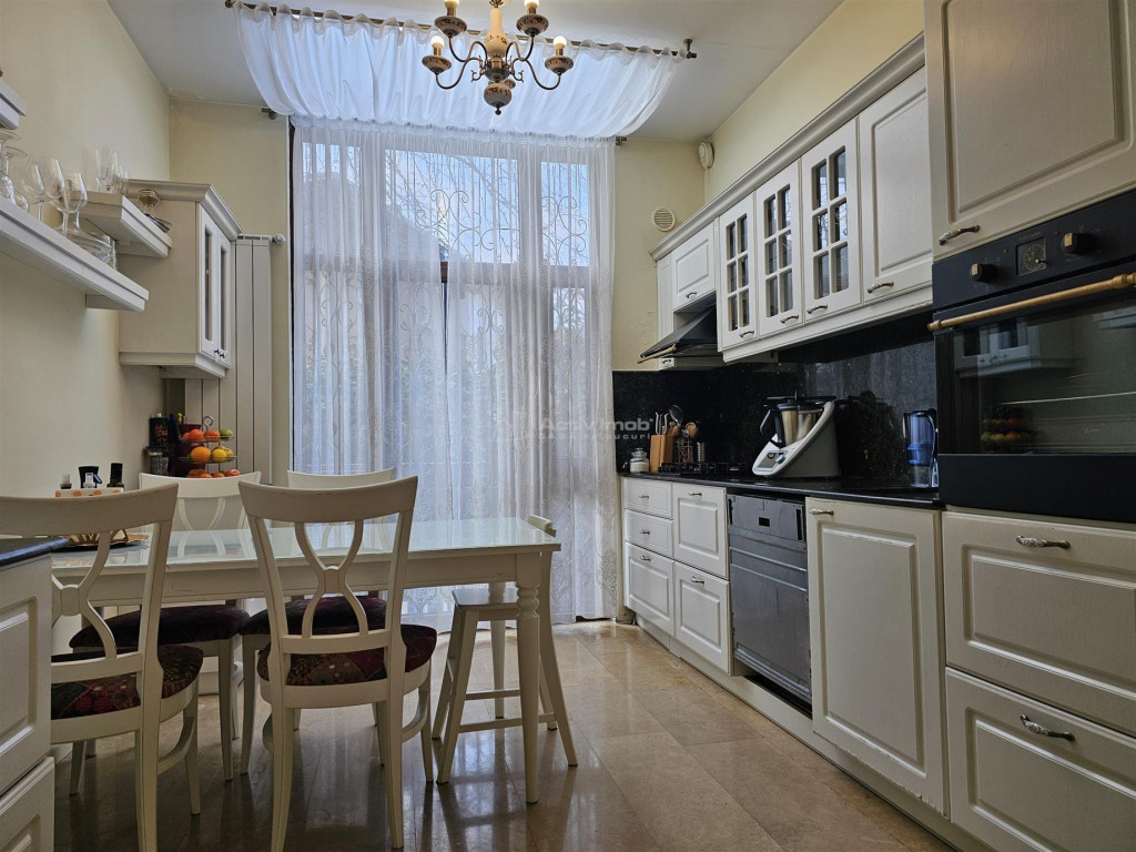 BENEFICII PENTRU CLIENTII ACESTEI OFERTE: 1. Beneficii oferite de zona: - Floreasca, zona de case, vile si cladiri cu regim mic de inaltime, aproape de Parcul Cinema Floreasca, Parcul Floreasca, Lacul Floreasca, supermarket-uri(Kaufland, LIDL, magazine stradale), restaurante, cluburi de noapte si recreative - Acces facil la: Promenada Mall - 6 min Parcul Herastrau- 10 min Complex Baneasa(Ikea, mall)- 15-18 min Aeroport Otopeni- 20 min Scoli si gradinite de stat si particulare 2. Bebeficii tehnice ale ofertei: - apartament cu 4 camere 1 camera la mansarda cu baie, la parterul unei vile in stare foarte buna, cu regim de inaltime Demisol Parter Etajul 1 Mansarda - in acest imobil mai sunt inca 2 proprietari, fiecare avand cate un nivel. -terenul pe care este acest imobil are suprafata de 480 mp, din care 150 mp este amprenta. Curtea este in proprietate comuna(devalmasie) cu proprietarul de la demisol. In curte sunt plante ornamentale, gazon, pomi fructiferi, instalatie de stropit, lampi ornamentale -obiectul vanzarii: parterul, garajul subteran, camera- cu hol si baie- de la mansarda, jumatate din curte, terasa, boxa pe doua niveluri, doua magazii cu intrari individuale situate intr-o singura constructie, plus ce se identifica in poze, proprietatea vanzandu- se mobilata si utilata. -apartamentul a fost renovat integral in anul 2015, inclusiv instalatia electrica si cea sanitara. Au fost folosite materiale de calitate, lucrarile au fost facute de firma specializata- se pot pune la dispozitie fotografii si filmari de la momentul renovarii -apartamentul dispune de centrala termica Buderus recent montata, garaj, camera de depozitare la demisol dispusa pe 2 niveluri, 4 aparate de aer conditionat Panasonic legate la o sigura unitate profesionala externa cu inverter; pe holul de la intrare, in bucatarie si in bai incalzirea se face prin pardoseala, in restul apartamentului prin calorifere; parchet din lemn masiv- nuc, usi interioare din lemn de tei. - doua bai(una cu cada, cealalta cu cabina de dus), spatioase, ambele cu geam pentru aerisire optima -suprafata utila a apartamentului(la nivelul parter) este 119 mp, adaugand balcon, cele doua boxe, garaj si magazia din curte= 178,47 mp(vezi schita atasata galeriei foto); cu tot cu camera si toaleta de la mansarda= 182, 27 mp total; suprafata construita este 237 mp -apartamentul are 3 intrari: cea principala(cu pozitionare spre strada), si doua laterale(din care una este cu acces in bucatarie si terasa, cealalta cu acces la camera de la mansarda) 3. Situatia juridica: - acte proprietate -liber de sarcini Va invitam la vizionare.
