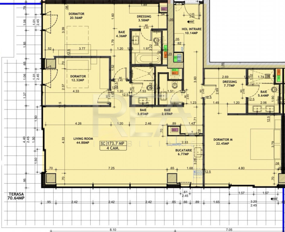R.E.A. Imobiliare Apartament 4 camere, mobilat și utilat premium, cu înălțimea tavanului de 3,4 metri, la etajul 13 din 14, în complexul rezidențial One Floreasca Towers, situat vizavi de Promenada Mall și Sky Tower, în inima zonei de business a Bucureștiului, cu acces rapid la Parcul Herastrau și Aeroportul Internațional Henri Coandă. - Suprafață totală de 215,65 mp: 145,01 mp utili+ 70,64 mp terasă. - Configurație: living cu bucătărie open space, 3 dormitoare, 2 dressing-uri, hol intrare, 3 băi, spălătorie și terasă. - Încălzire în pardoseală asigurată de centrala de imobil și climatizare prin ventiloconvectoare. - 2 locuri de parcare subterane sunt incluse în preț ( unul cu sursă electrică pentru stație de încărcare auto ). Preț 1.300.000 EUR + TVA ( sau 1.573.000 EUR TVA inclus ). Acces rapid la transportul public: 3 minute până la statiile STB, 9 minute până la Metrou Aurel Vlaicu. Contactează-ne pentru detalii suplimentare și programarea unei vizionări private. Cod proprietate P9023. Id intern: P9023