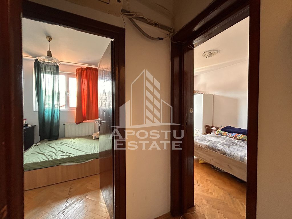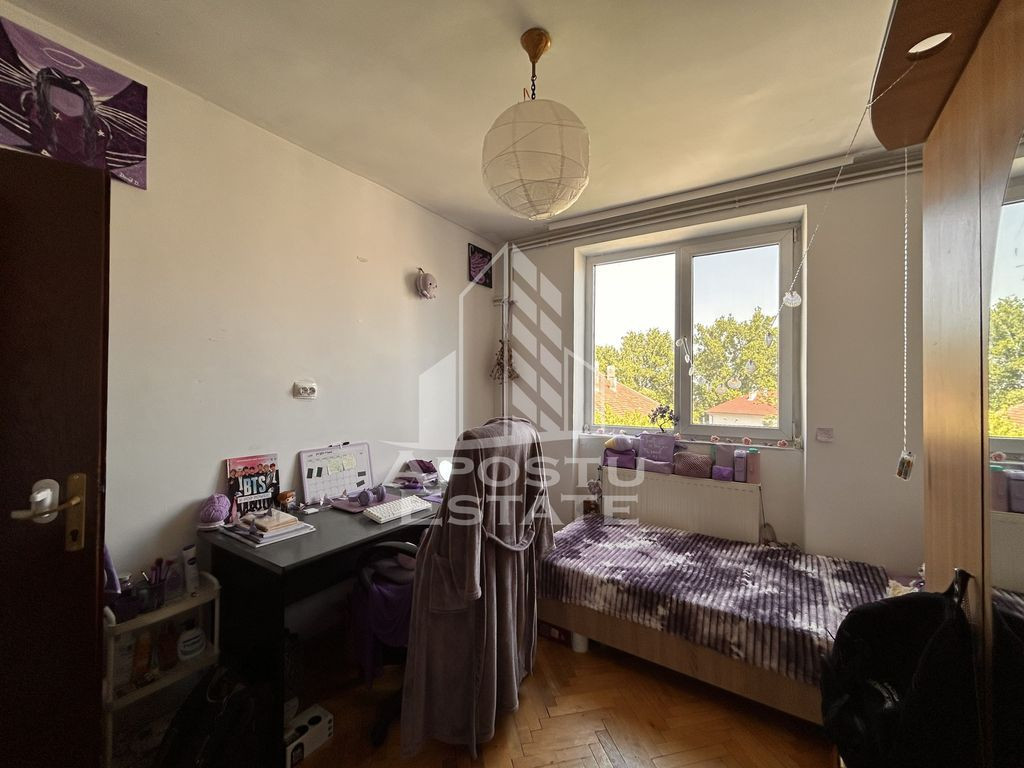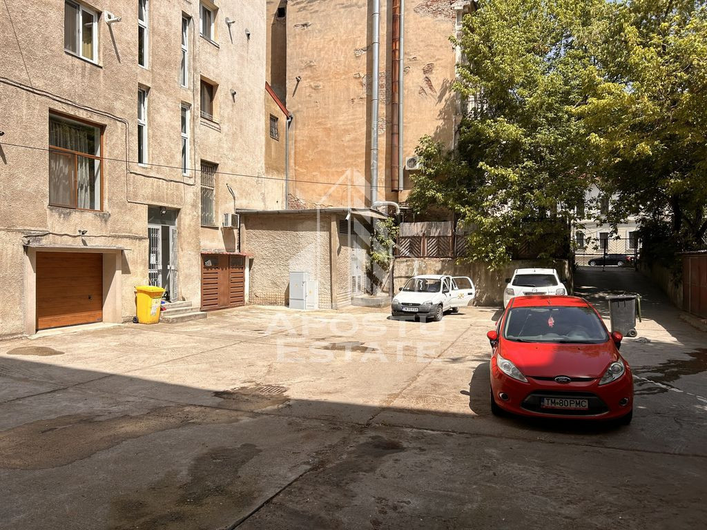 APOSTU ESTATE vă propune spre vânzare un apartament cu 4 camere, situat ultracentral, în inima Timișoarei – chiar în Piața Unirii. Proprietatea impresionează prin spațiu, lumină naturală și o terasă cu vedere panoramică, perfectă pentru relaxare sau amenajare personalizată. În prezent, apartamentul este închiriat către studenți și produce o chirie lunară generoasă, ceea ce îl face o alegere excelentă pentru investiție. Localizare Piața Unirii Terasă generoasă în folosință exclusivă Loc de parcare în curtea interioară, securizată Apartament situat într-un imobil solid, întreținut Suprafață utilă: 93 mp + terasă in folosinta Compartimentare: Hol acces bucătărie spațioasă, cu loc de luat masa, living generos, 3 dormitoare luminoase, baie cu cadă, toaletă de serviciu, 2 spatii de depozitare, boxa la demisol, terasă privată cu acces direct Dotări: parchet masiv, geamuri termopan, tâmplărie PVC, ușă metalică, incălzire cu centrală termică proprie, boxă de depozitare Programează o vizionare! Apartamentele cu astfel de caracteristici în Unirii sunt rare și foarte căutate!