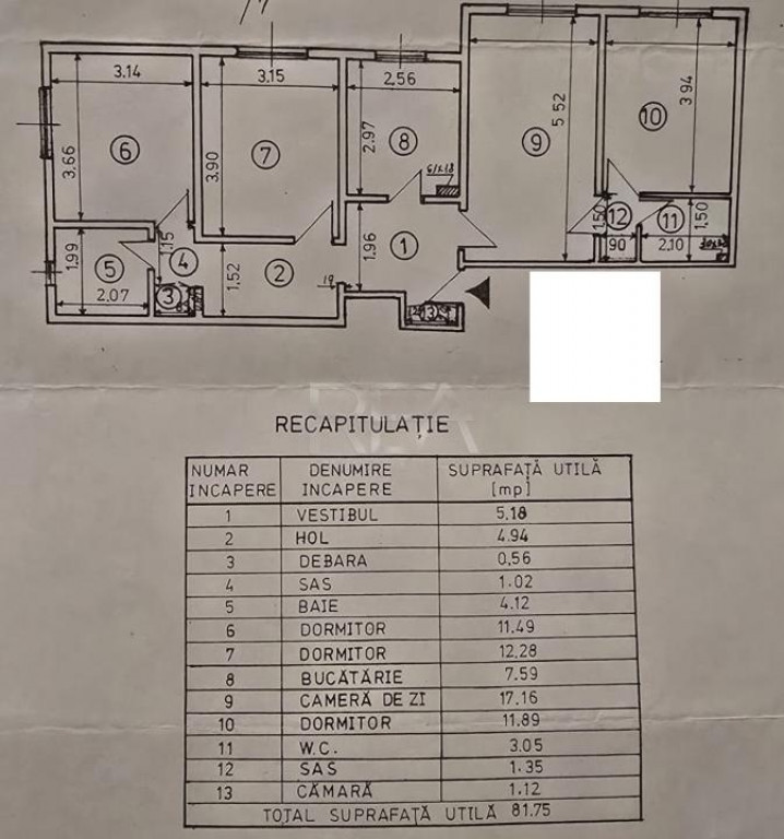 4 camere Dristor decomandat, an 1984, 82 mp