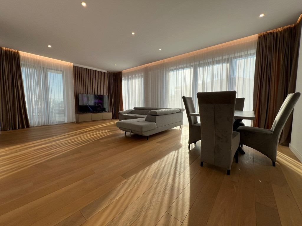 apartament superb cu 4 camere, situat la etajul 5 al ansamblului rezidențial exclusivist One Herăstrău Towers, pe Strada Nicolae Caranfil nr. 74B. Detalii apartament: Suprafață interioară: 124 mp Terasă: 10 mp Suprafață totală: 134 mp Etaj: 5 Loc de parcare disponibil contracost Compartimentarea este optim gândită, oferind un living generos și luminos, o bucătărie modernă, 3 dormitoare spațioase și 3 băi elegante. Terasa oferă un spațiu perfect pentru relaxare, cu vedere spre zona de nord a capitalei. Beneficii ale ansamblului One Herăstrău Towers: Clădire modernă, cu standarde premium de construcție și finisaje Recepție și pază permanentă 24/7 Spații comune elegante și bine întreținute Localizare de top, la câteva minute de Parcul Herăstrău, Mall Promenada, restaurante, centre de afaceri și mijloace de transport în comun Apartamentul este alegerea ideală pentru cei care își doresc un stil de viață modern, sigur și confortabil, într-o zonă exclusivistă a Bucureștiului. Disponibil imediat pentru închiriere.
