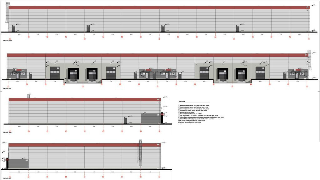 Pereți exteriori: Panouri sandwich de 100 mm; panouri prefabricate din beton (zona andocare)