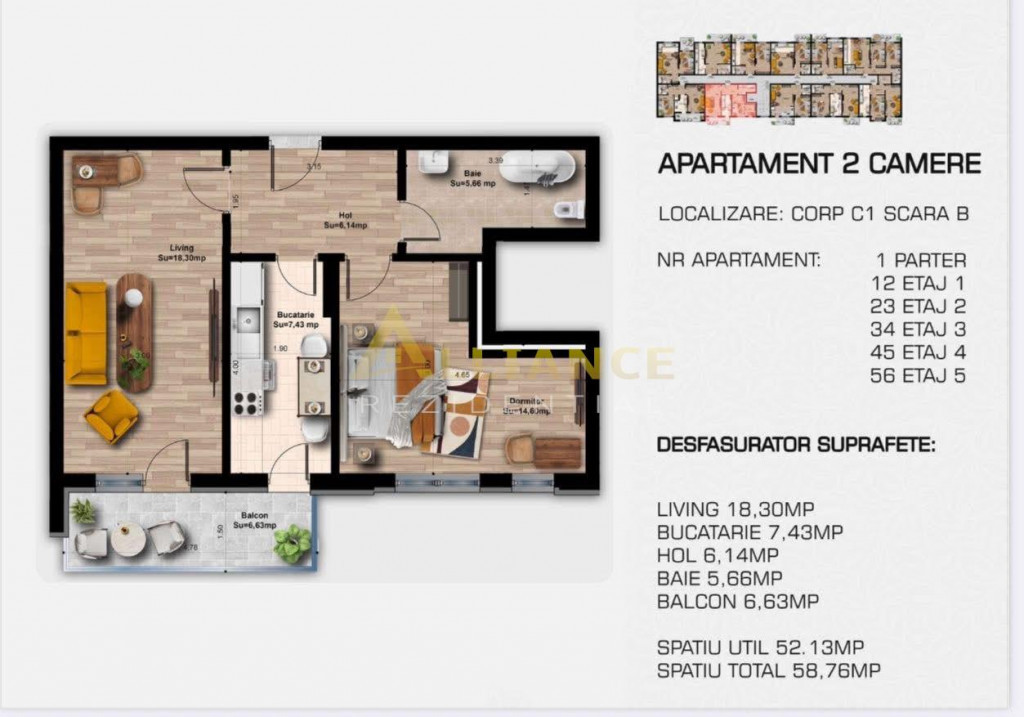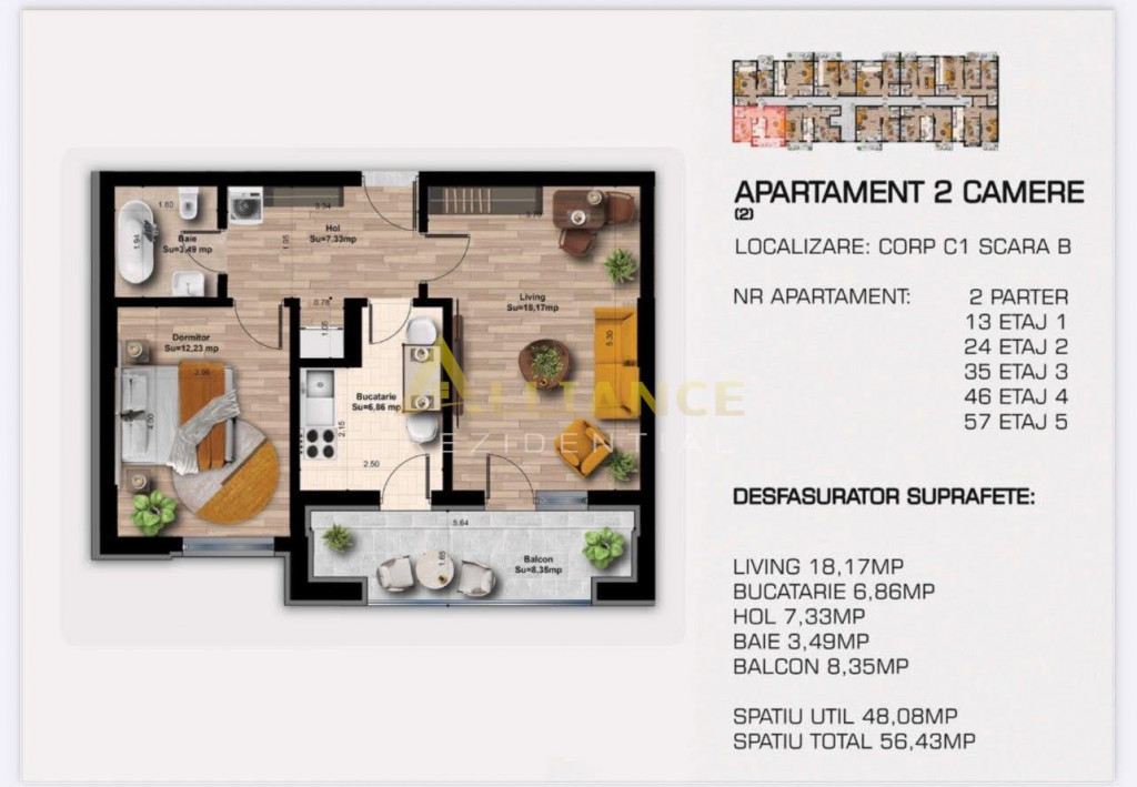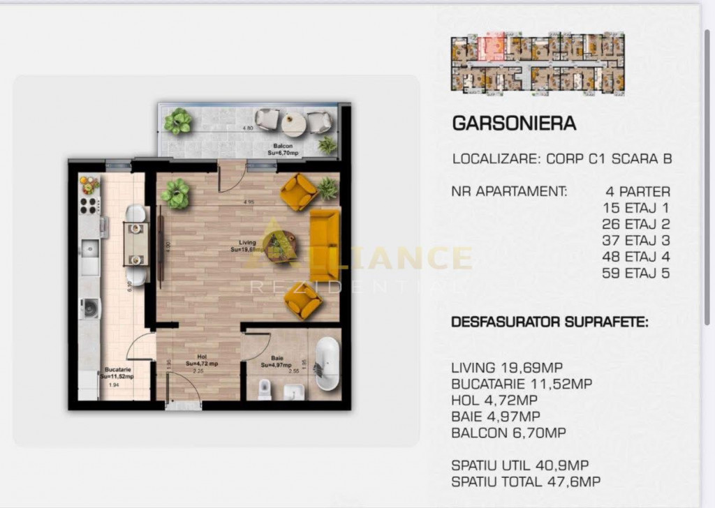 Suprafața utilă 48 m²
