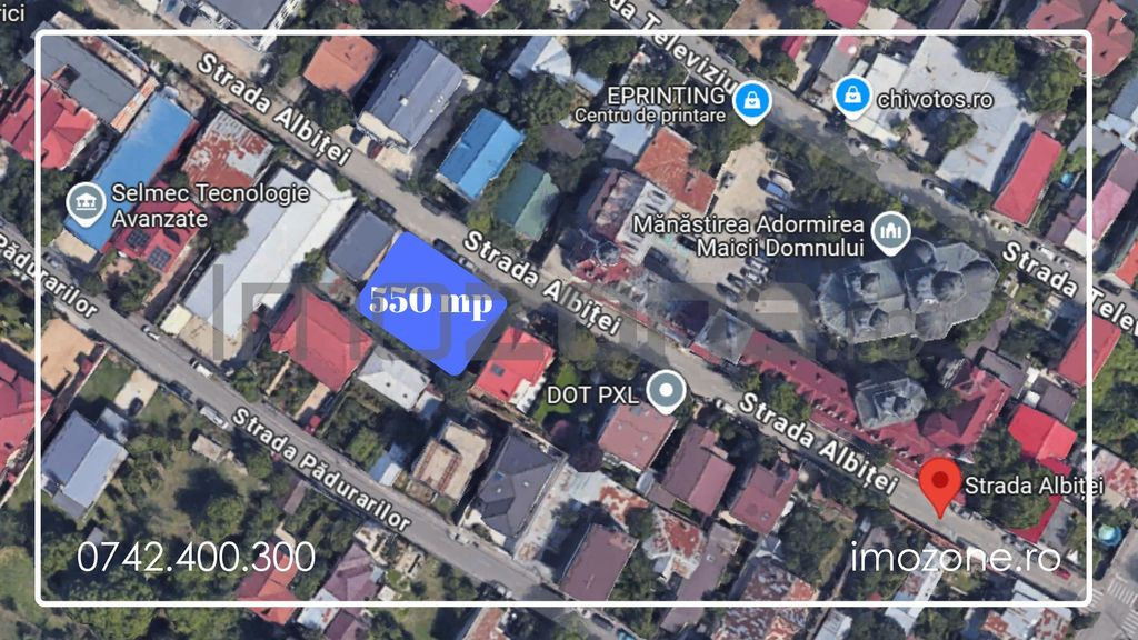 Teren cu suprafata de 550 mp ideal pentru investitie cu deschidere de 24,6 m la strada Albitei, in zona de vile/case cu regim de inaltime P+1 / P+2, intr-o zona linistita, cu acces rapid si facil catre toate zonele de interes ale orasului, cu scoli, gradinite, piete, centre comerciale in imediata apropiere. Pe acest teren se poate construi un imobil cu regim de inaltime de maxim S+P+2+M, o casa individuala sau un duplex. Este ideal atat pentru dezvoltare imobiliara cat si pentru construirea unei case unifamiliale. Utilitatile sunt la intrarea pe teren iar curentul electric este deja bransat! Pret - 250.000 euro Comision 0% Toate documentele necesare vanzarii sunt disponibile. Mihai Marin