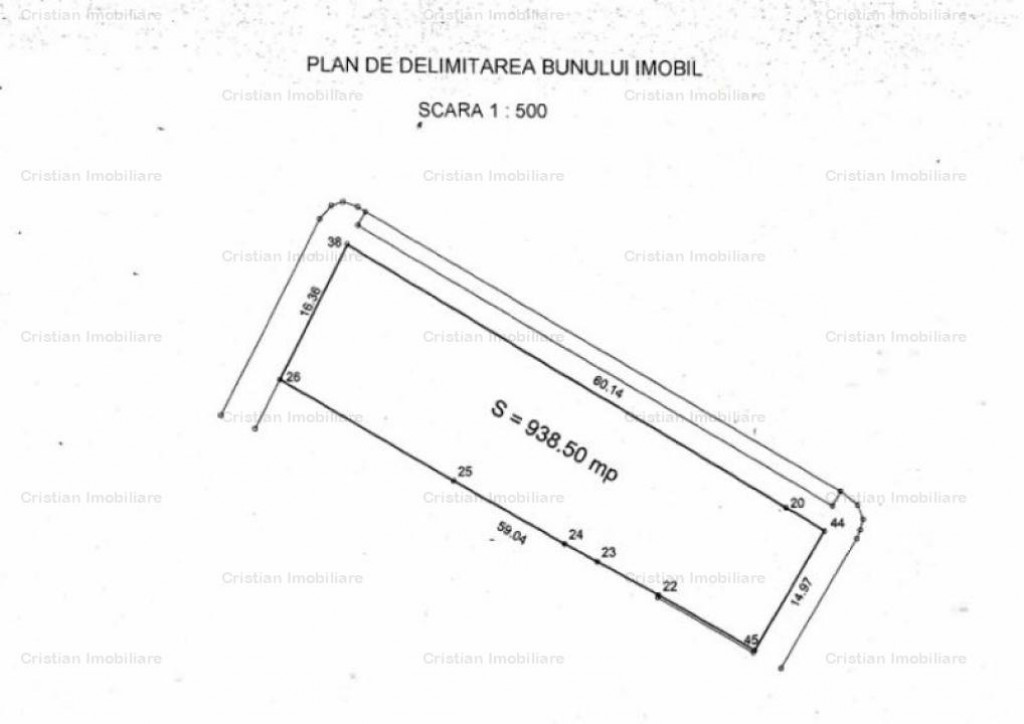 Teren ultracentral cu o suprafata de 938 mp, cu deschidere de 60 m