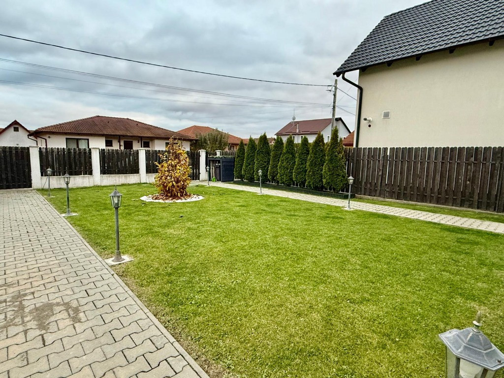 A/1667 Speed Imobiliare vă propune spre vânzare o proprietate deosebită, situată într-o zonă rezidențială liniștită din Sâncraiu de Mureș. Casa, edificată în anul 2021, se remarcă printr-un design modern, finisaje de înaltă calitate și un nivel ridicat de confort. Are o suprafață utilă de 141 mp, fiind amplasată pe un teren de 430 mp. Compartimentare și dotări: Living spațios și luminos, 3 dormitoare 2 băi elegante Centrală termică proprie și încălzire în pardoseală Șemineu funcțional Tâmplărie cu geam termopan Mobilată și utilată complet Sistem de supraveghere video Curte amenajată cu gazon și sistem de irigație automat Proprietatea oferă un ambient primitor și o atmosferă relaxantă, ideală pentru o familie care își dorește o locuință confortabilă, într-o zonă exclusivistă și bine conectată la oraș. Preț de vânzare: 255.000 €