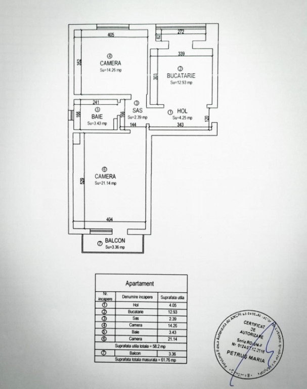 Suprafața utilă 58 m²