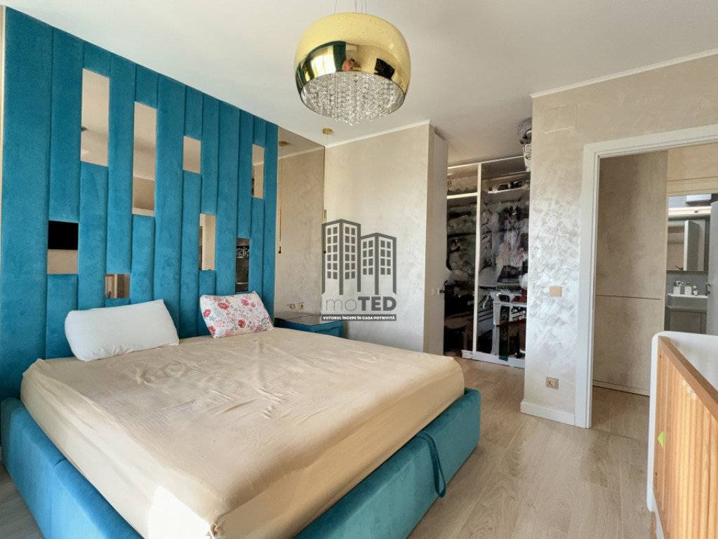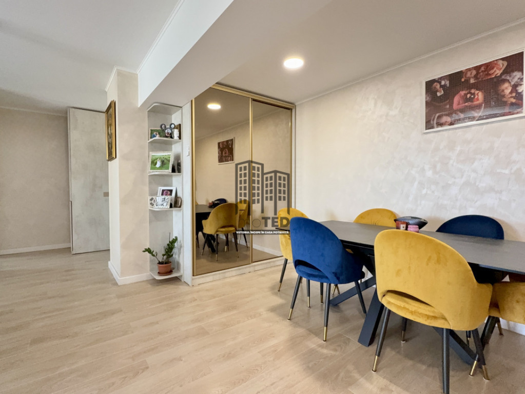 Imediat ce pășești în acest apartament de 2 camere din ARBO Residence Mogosoaia, ai senzația că intri într-un loc unde fiecare detaliu a fost gândit pentru confort și frumusețe. Lumina pătrunde generos prin ferestrele mari, iar livingul spațios te întâmpină cu o atmosferă caldă, mobilată cu piese moderne și elegante. Canapeaua confortabilă Rovere te invită la relaxare, iar televizorul de mari dimensiuni creează cadrul perfect pentru seri liniștite în familie sau momente de destindere după o zi plină. Bucătăria, deschisă către living, este nu doar funcțională, ci și un spațiu unde gătitul devine o plăcere. Dotată cu electrocasnice de ultimă generație – frigider Samsung Side by Side, mașină de spălat vase Bosch, plită și cuptor Electrolux – oferă tot ce ai nevoie pentru a pregăti mese delicioase. În zona de dining, masa ceramică extensibilă și scaunele din catifea creează un cadru rafinat pentru cine cu prietenii sau pentru mesele în familie. Dormitorul matrimonial este un adevărat sanctuar al relaxării. Mobilierul pe comandă, peretele tapițat cu oglinzi elegante și galeria decorativă creează o ambianță luxoasă și liniștitoare. Salteaua premium de 32 cm îți promite nopți odihnitoare, iar televizorul din cameră completează confortul. Alături, dressingul spațios, compartimentat inteligent, devine locul ideal pentru organizarea garderobei. Baia modernă, cu walk-in shower, aduce un plus de rafinament, combinând funcționalitatea cu designul minimalist. Totul este completat de detalii premium – de la prizele Lenovo Gold Touch, la dulapul pentru vinuri cu bandă LED și sistemul de climatizare cu două aparate de aer condiționat. Iar balconul, cu priveliștea deschisă de la etajul 7, îți oferă un colț de liniște unde poți savura cafeaua de dimineață sau un pahar de vin la apus. Complexul ARBO Residence înseamnă mai mult decât o simplă locuință: este un stil de viață. Rezidenții beneficiază de piscină privată, spații verzi, zone de relaxare și acces securizat. Ai liniștea unui cartier retras și aerisit, dar și avantajul de a fi aproape de București și de zonele de agrement din Mogosoaia. Acest apartament nu este doar un spațiu de locuit, ci un loc unde te poți simți „acasă” din prima clipă. Totul este pregătit pentru tine – complet mobilat și utilat – astfel încât să te poți muta imediat și să începi un nou capitol al vieții tale într-o locuință care îmbină eleganța, confortul și funcționalitatea. Id intern: P203935
