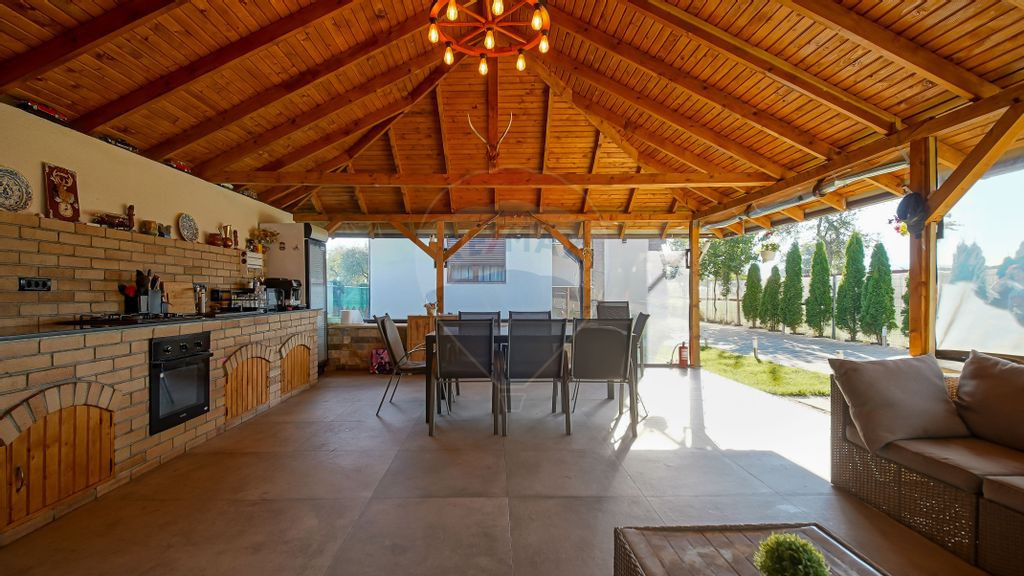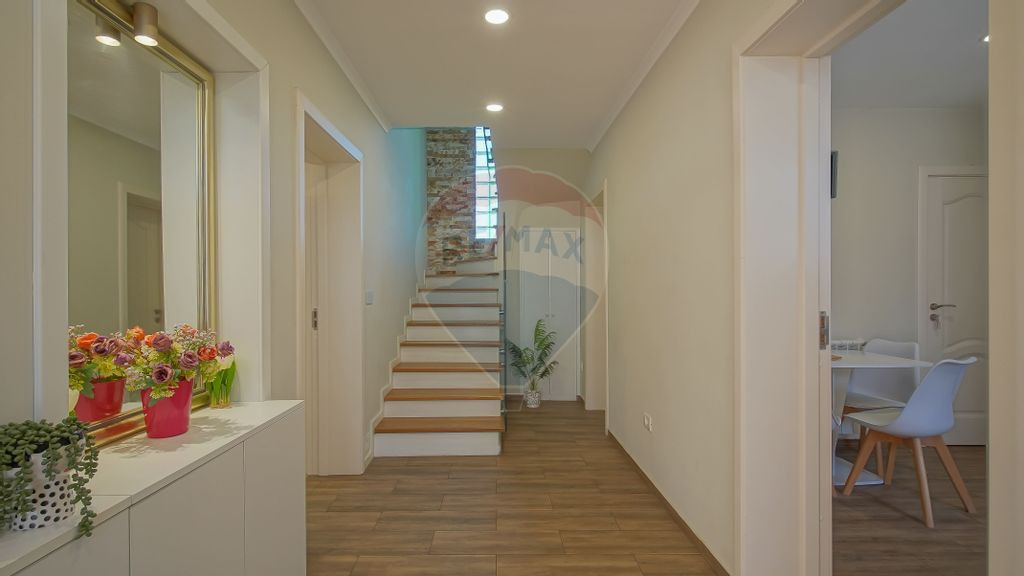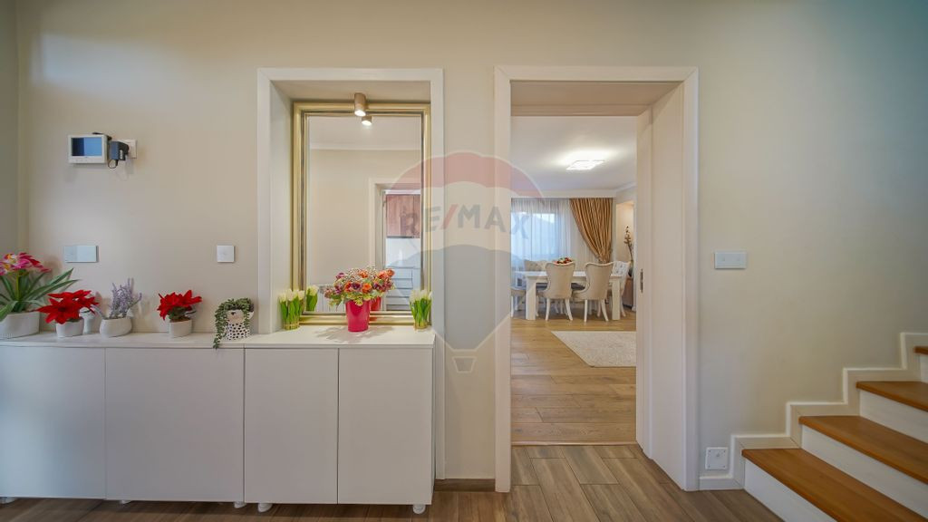 Imaginează-ți cum ar fi să te trezești dimineața într-o casă luminoasă, cu priveliști frumoase, într-o zonă liniștită din Prejmer, la doar câțiva kilometri de agitația orașului. O curte generoasă de 755 mp te așteaptă cu gazon verde, arbusti decorativi și un sistem de irigare care păstrează grădina mereu vie. Accesul este facil și elegant, prin porți automatizate și videointerfon, iar gardul din beton îți oferă intimitatea de care ai nevoie. Construită în 2021, casa îmbină armonios modernul cu funcționalitatea. La parter, livingul spațios și zona de dining devin centrul vieții de familie, bucătăria separată cu cămară este locul unde se pregătesc cele mai bune rețete, iar garajul integrat adaugă un plus de confort. La etaj, cele trei dormitoare primitoare, baia cu cadă și balconul te invită la relaxare și momente de liniște. Fiecare detaliu a fost ales cu grijă: ferestre cu geam tripan și rulouri din PVC pentru confort și siguranță, finisaje moderne, mobilă și electrocasnice de calitate. Casa este dotată cu aer condiționat și sistem de supraveghere, astfel încât să te bucuri de un trai lipsit de griji. În curte, un foișor de 30 mp complet utilat cu cuptor, plită, aragaz, cuptor pentru pizza și frigider așteaptă să fie locul unde petreci serile de vară alături de prieteni și familie. Un carport pentru două mașini și o magazie completează perfect ansamblul. Cu toate utilitățile necesare – gaz, curent (inclusiv trifazic), apă, canalizare și internet – această proprietate este pregătită să îți ofere confortul unui cămin modern, într-un cadru natural și plăcut. Această casă nu este doar o locuință, ci un stil de viață – un loc unde fiecare zi începe cu liniște, spațiu și bucuria de a fi acasă. Pentru detalii suplimentare sau programarea unei vizionări, vă stau cu drag la dispoziție!