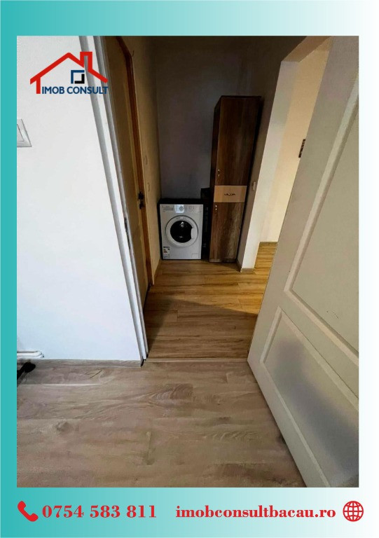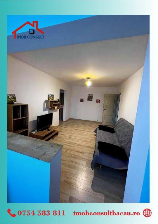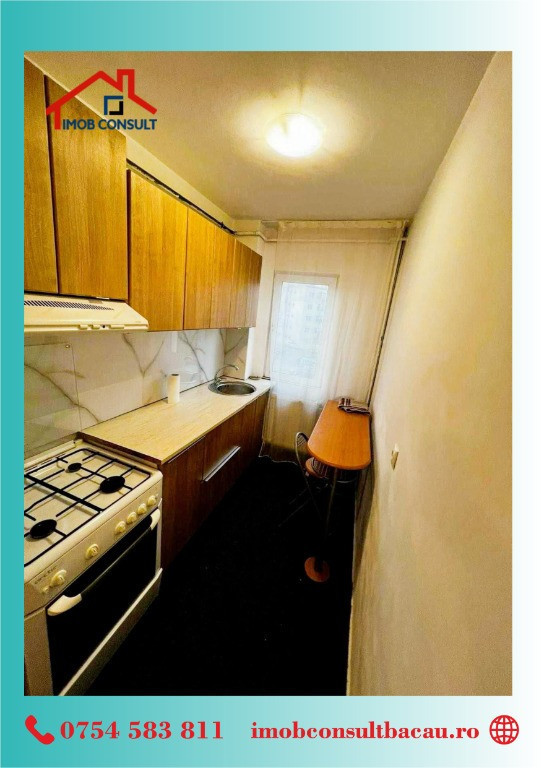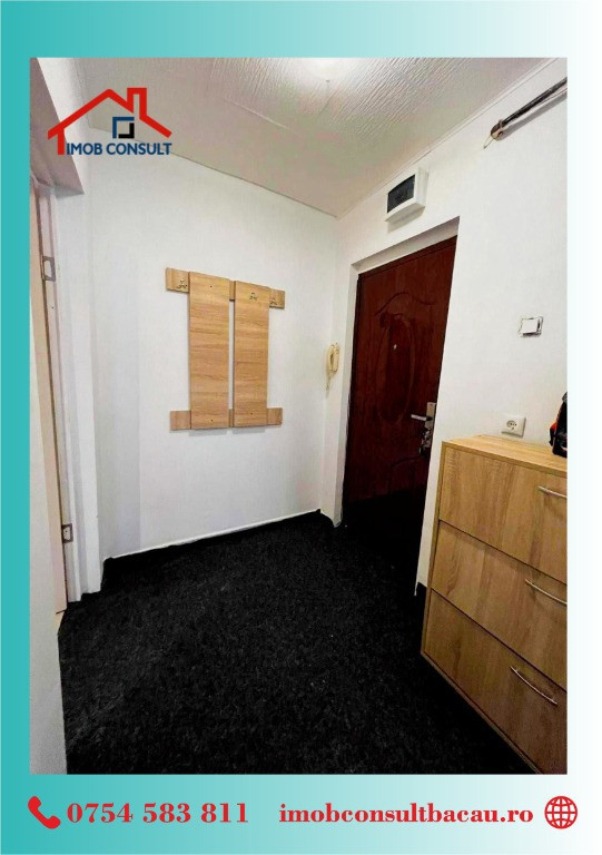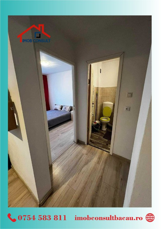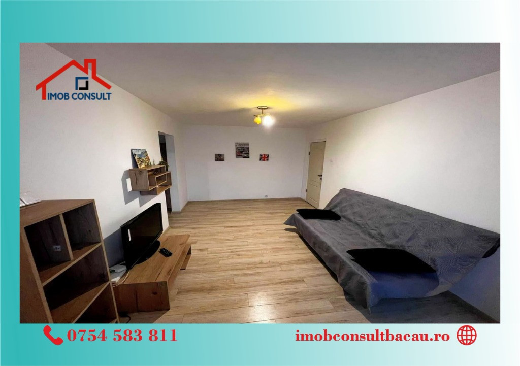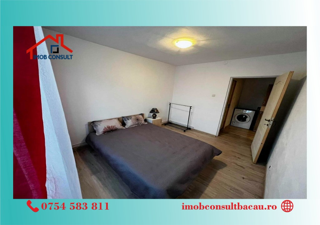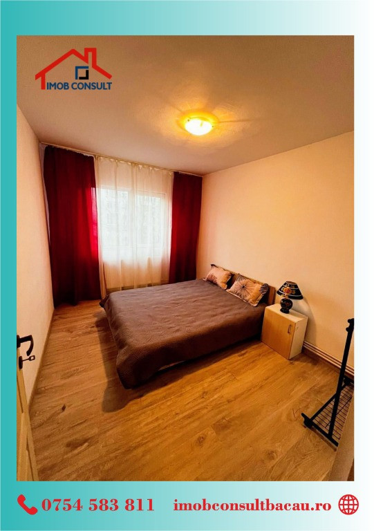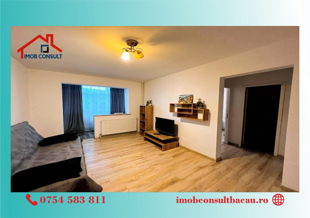 Echipa Imob Consult Bacau, va prezinta spre inchiriere un apartament cu doua camere, situat la etajul 2 al unui imobil cu 4 etaje. Zona linistita cu acces facil la punctele de interes ale orasului. Ideal pentru un stil de viață relaxat și accesibil. Detalii esentiale: - Doua camere spatioase; - Dotări: geamuri termopan, balcon inchis; - Baie: complet echipata; - Confort: centrală termică proprie; - Suprafata utila de 48 mp; - Balcon inchis; - Complet echipat si utilat. Pentru vizionari si relatii suplimentare, contacteaza-ne: - Cosmin: 0754 583 811; - Corina: 0740 288 297, sau la sediul agenției noastre, Imob Consult Bacau, situat pe strada Banca Națională nr. 27 la intersecția cu Str. Neagoe Vodă, langa Irish Pub.