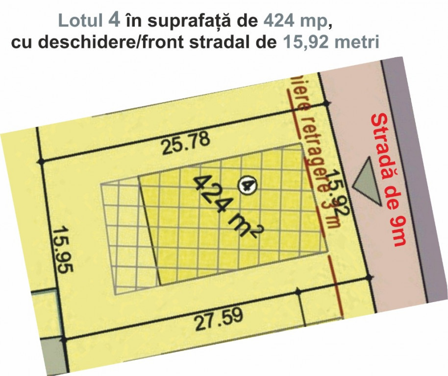 Acționează acum! 9 loturi de teren pentru case în Sibiu str. Viile Sibiului. Alege unul sau mai multe. Alege ACUM locul/lotul de care ai nevoie și ai o reducere consistentă asigurată. Ești hotărât (ă)? Trimite un mesaj cu lotul ales și primești un preț preferențial. Sună sau dă un mesaj la telefon: 0733.232.535. Hopa. Stai așa! Pentru că: Vând loturi de teren intravilan pentru construcții de case. Poți construi casa ta singur în curte, poți să construiești o casă tip duplex, împreună cu un prieten, sau poți construi case înșiruite cu mai mulți prieteni într-un mod personalizat. Unde este locația? În Sibiu, strada Viile Sibiului, între case, în zonă rezidențială cu drum asfaltat. Poți ajunge cu mașina ta, sau ai asigurat transportul în comun cu mai multe curse ale Tursib. Terenul este aproape de Parcul de retail Prima Shopping Center, pentru a-ți face cumpărăturile necesare. Însă este un loc retras, liniștit și luminos, cu vedere panoramică asupra orașului. Ce vindem, totuși? Loturi de teren pentru casa ta. Iată câteva care ți s-ar potrivi și ție: Lotul 11 de 248 metri pătrați la prețul de DOAR 22.320 euro. Acum la preț special! Lotul 22 de 430 metri pătrați la prețul de DOAR 38.699 euro. Acum la preț special! Lotul 23 de 414 metri pătrați la prețul de DOAR 37. 499 euro. Acum la preț special! Lotul 41 de 344 metri pătrați la prețul de DOAR 30.960 euro. Acum la preț special! Lotul 19C de 341 metri pătrați la prețul de DOAR 30.690 euro. Acum la preț special! Lotul 4 de 424 metri pătrați la prețul de DOAR 38.160 euro. Acum la preț special! Lotul 10 de 274 metri pătrați la prețul de DOAR 24.660 euro. Acum la preț special! Lotul 40 de 318 metri pătrați la prețul de DOAR 28.620 euro. Acum la preț special! Lotul 36 de 256 metri pătrați la prețul de DOAR 23.040 euro. Acum la preț special! Toate prețurile au 21% - T.V.A. inclus. Sună sau dă un mesaj la telefon: 0733.232.535. Alege ACUM locul/lotul de care ai nevoie și vei avea o reducere consistentă. Ești hotărât? Trimite un mesaj cu lotul ales și primești prețul preferențial. Ce facilități ai pentru a-ți ușura decizia și pentru a-ți construi casa? Instalație de curent electric există? Da. Noi efectuăm proiectul, gestionăm lucrările și introducem rețeaua principală pe costul propriu, iar tu doar îți achiți branșamentul tău care include materiale, manoperă și taxe. Unele loturi de teren au instalația de furnizare în fața lotului de teren. Avem disponibil gaz și apă, dar și canalizare? Da. Noi asigurăm proiectarea, gestionăm lucrările de construcție și introducem conductele principale de gaz, apă și canalizare pe costul nostru financiar, iar tu doar te vei conecta la ele prin branșamentul tău, achitând materialele, manopera și taxele aferente. Unele loturi de teren au instalația de furnizare în fața lotului de teren. Pot să-mi construiesc casa în viitorul apropiat? Da. Noi asigurăm, gestionăm și finanțăm pe cheltuiala noastră efectuarea Documentației de urbanism care este inițiată și se află deja în derulare, adică Planul Urbanistic Zonal cu autorizare directă. Cum ajung la terenul meu? Ușor. Sunt asigurate căi de acces cu străzi de nouă și doisprezece metri pentru un acces facil. Tot noi ne ocupăm de realizarea proiectului și gestionarea străzilor până la predarea lor către Primăria Sibiu. Hai! Grăbește-te, avem o Ofertă de preț imbatabilă și parcelele sunt limitate! Vindem doar o parte din parcele, pentru că pe restul construim noi. Nu-ți este clar? Vino să te lămurești la fața locului. Haide să-ți arătăm și să-ți explicăm pe îndelete. Suna la 0733.232.535.