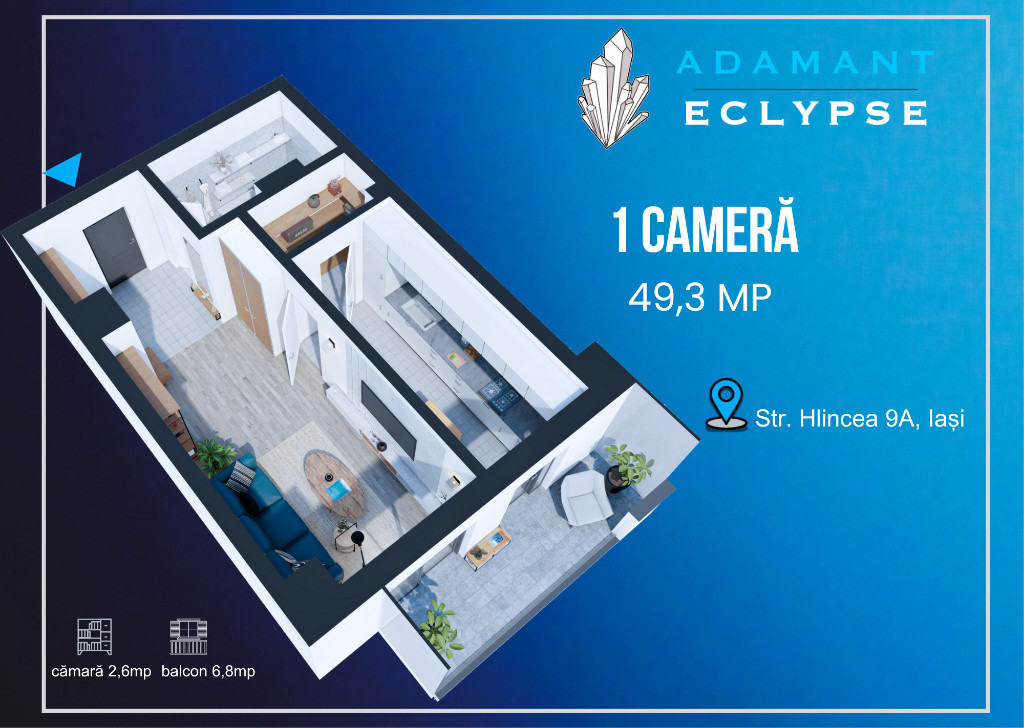 ADAMANT ECLYPSE | 1 camera tip 1C | cu cămară | 49,3mp | CUG - Iasi