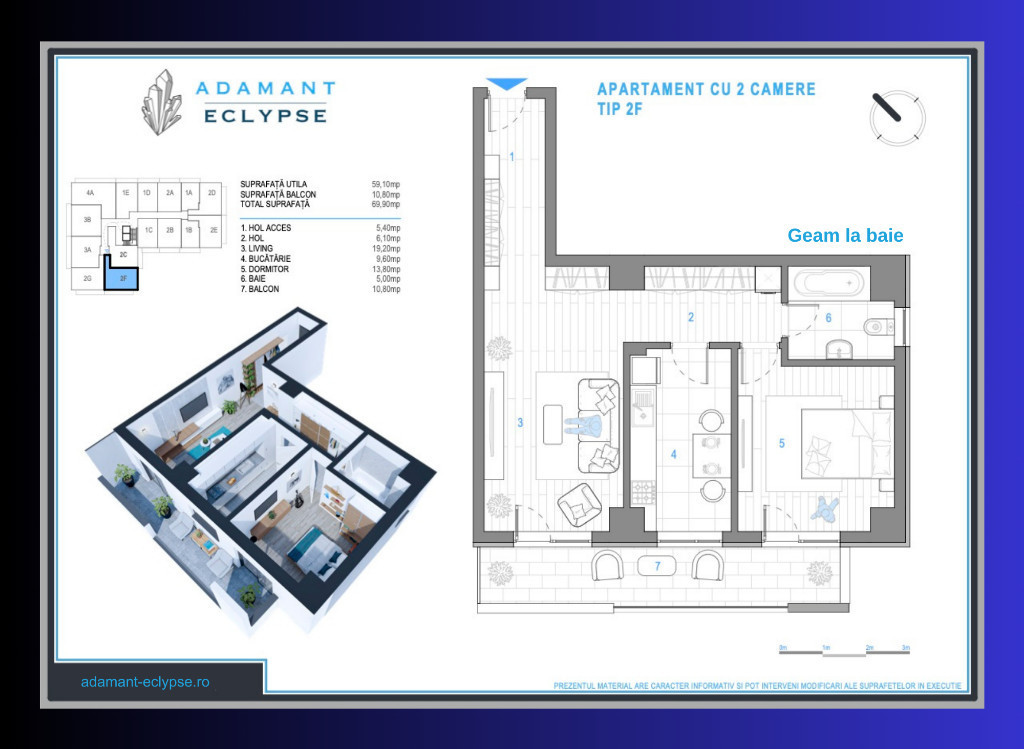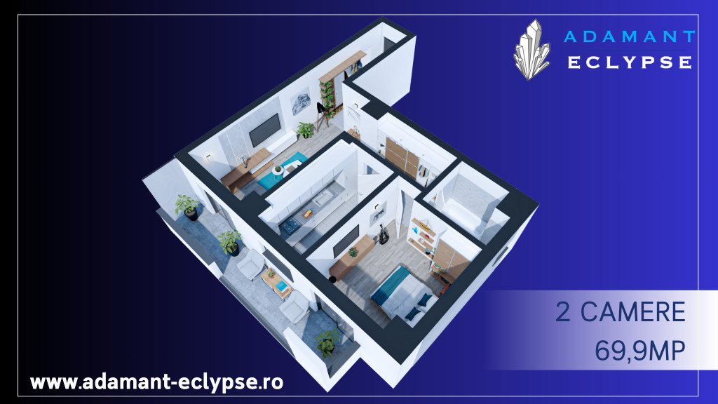 ADAMANT ECLYPSE | 2 camere tip 2F | decomandat | 69.9mp | Iași - CUG