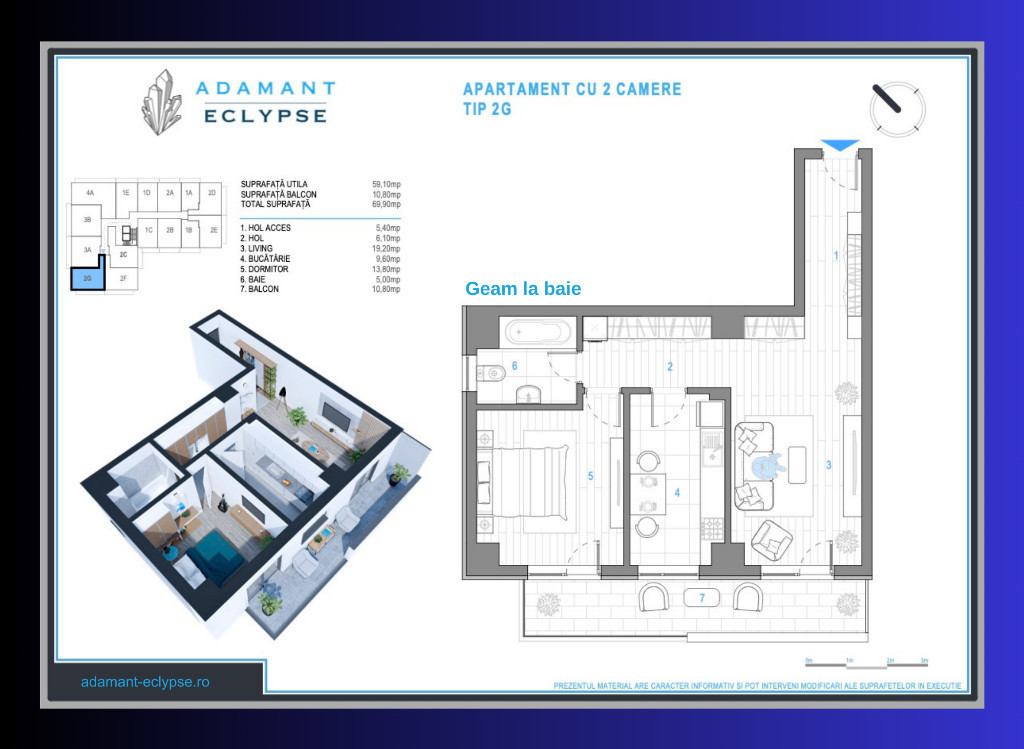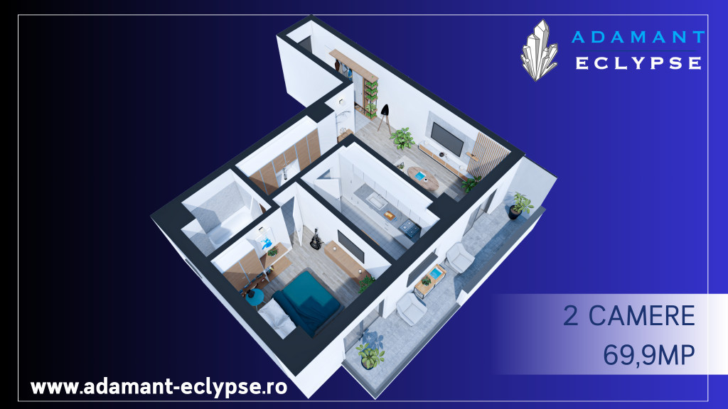 ADAMANT ECLYPSE | 2 camere 2G| decomandat 69.9mp| CUG-Iași