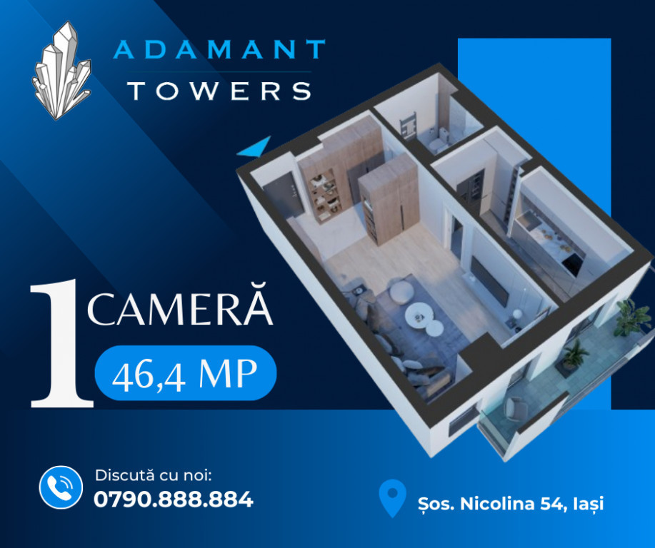 Adamant Towers | 1 camera | decomandat | 46.4 mp | Nicolina, Iaşi