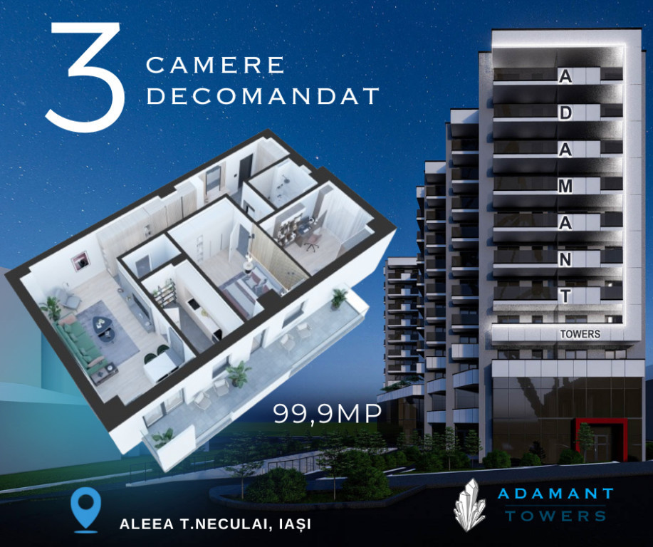 Adamant Towers | 3 camere | decomandat ~ 100mp | Iaşi la Bd. Nicolina