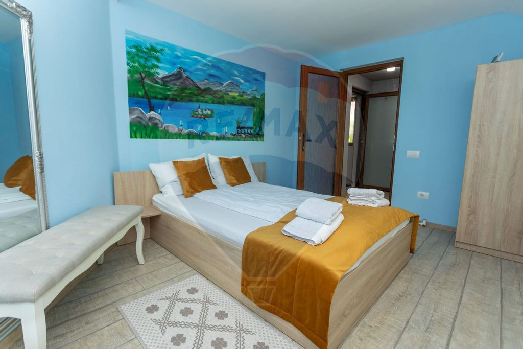 Sunt Daniel Andor și vă propun spre vânzare, cu 0% comision pentru cumpărător, o proprietate cu potențial investițional excelent, situată în Satu Nou de Jos, Strada Republicii, la doar 2 minute de municipiul Baia Mare. Proprietatea este amplasată pe un teren de 959 mp și cuprinde o pensiune clasificată la 3 stele, o casă de locuit separată și o zonă de barbeque, fiind ideală pentru continuarea activității turistice sau pentru o afacere de tip HoReCa, combinată cu locuință proprie. Pensiunea este construită în anul 2011, are regim de înălțime P+M și o suprafață construită de 234 mp, fiind compartimentată funcțional astfel: Compartimentare pensiune: 5 camere duble, fiecare cu baie proprie 1 cameră triplă, dotată cu baie privată 2 dintre camerele duble dispun de balcoane Restaurant & zonă de servire: Restaurant cu capacitate de până la 25 de persoane Pizzerie complet echipată și mobilată Bar funcțional, ideal pentru servire și evenimente restrânse Pe lângă pensiune, proprietatea include și o casă de locuit, perfectă pentru administratori sau proprietari, compartimentată astfel: Dormitor Living Bucătărie Baie Caracteristici și utilități: Teren generos de 959 mp Zonă de barbeque amenajată Racord complet la toate utilitățile: apă, gaz, curent, canalizare Acces facil și vizibilitate bună, ideală pentru activitate turistică Această proprietate reprezintă o oportunitate excelentă de investiție, cu activitate ce poate fi continuată imediat, dar și o soluție practică pentru cei care doresc să îmbine afacerea cu locuința personală, aproape de Baia Mare. Pentru detalii suplimentare și programări pentru vizionare, nu ezitați să mă contactați: 0751 094 509 – Daniel Andor