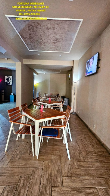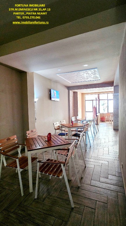 AFACERE LA CHEIE - SPAȚIU COMERCIAL, ZONA DĂRMĂNEȘTI, 170.000 EURO FORTUNA IMOBILIARE oferă spre achiziționare spațiu comercial situat în zona Dărmănești, cu autorizație pentru alimentație publică, ideal pentru activități comerciale, restaurant, birouri contabilitate, center beauty etc. Imobilul are suprafața de 107 mp, deține vitrină mare stradală și dublu acces - pentru clienți și pentru aprovizionare. Este compus din spațiu prezentare, spațiu / magazie pentru depozitare, grup sanitar dublu ( femei și bărbați ). Beneficiază de o mică terasă de 6,5 mp în față, 2 boxe la subsolul blocului și un loc de parcare în imediata proximitate. Este prevăzut cu centrală termică, sisteme de supraveghere video și alarmare. Este recent renovat integral cu materiale premium. Preț 170.000 euro Pentru o prezentare detaliată a acestui imobil și programarea unei vizionări, vă invităm la sediul nostru, Fortuna Imobiliare, situat pe str. M. Eminescu, nr. 35, ap. 13, parter, lângă fostul Tribunal, tel. contact 0755.270.041. Oferta noastră completă o găsiți aici: https://imobiliarefortuna.ro/