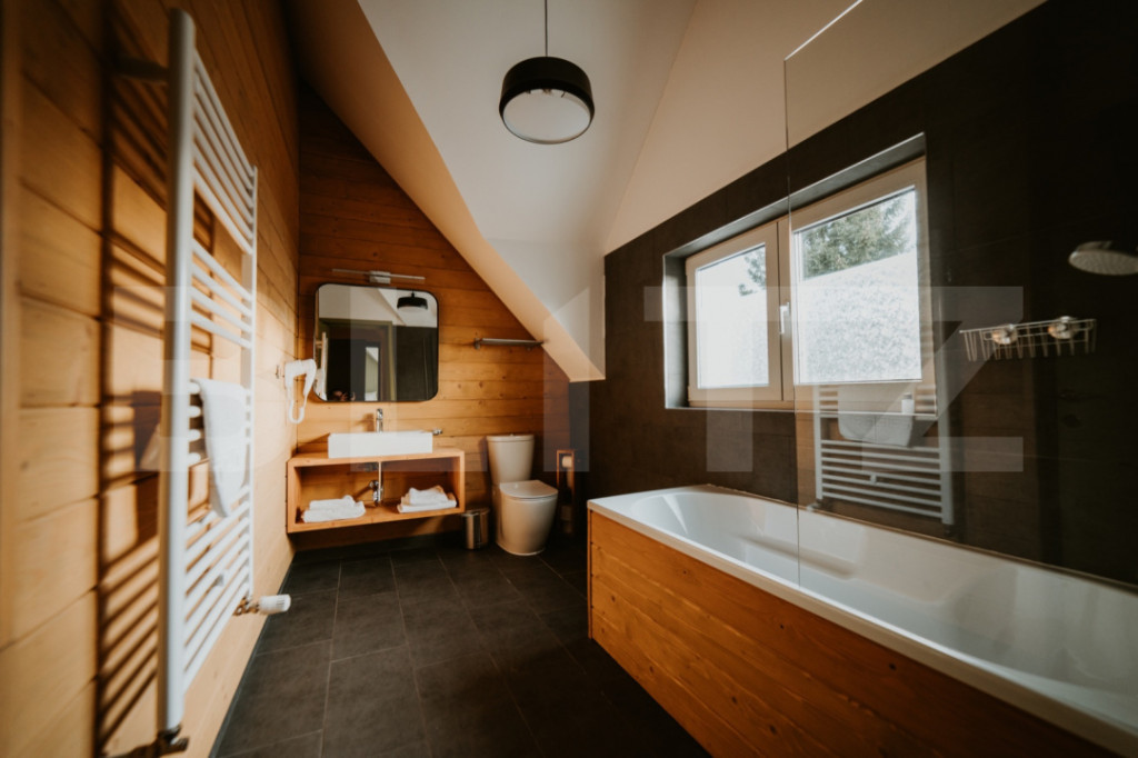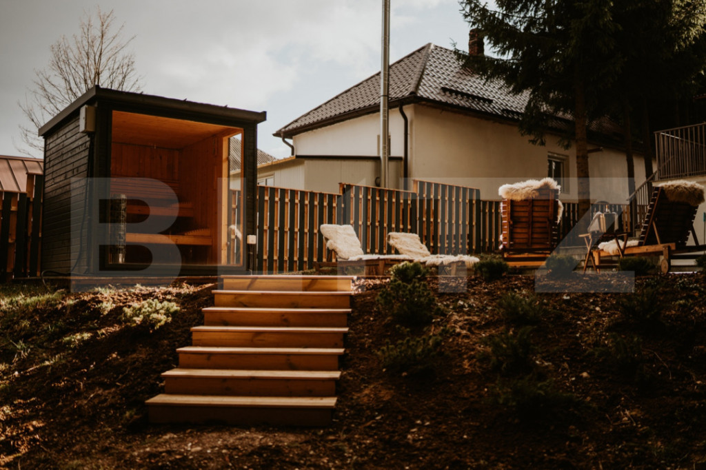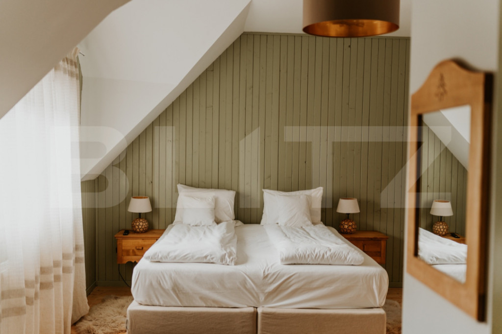 Blitz va prezinta o vilă premium în Beliș – afacere la cheie, complet funcțională în circuit turistic Descoperă o proprietate unică, situată în inima naturii, în comuna Beliș, județul Cluj, o zonă renumită pentru peisajele spectaculoase și aerul curat de munte. Această vilă premium de aproximativ 300 mp, complet renovată și modernizată în perioada 2020–2021, reprezintă alegerea ideală pentru cei care doresc o afacere turistică la cheie sau o casă de vacanță exclusivistă. Caracteristici generale Suprafață construită: aprox. 300 mp Teren: 1.600 mp (curte concesionată pe 70 de ani de la Primărie) Construcție solidă din cărămidă și beton, acoperiș din țiglă (1994) Complet renovată cu finisaje de calitate Încălzire centrală pe lemne și peleți Ferestre termopan cu 3 straturi pentru izolație superioară Compartimentare și dotări interioare 5 dormitoare spațioase, fiecare cu baie proprie – Paturi duble 180x200 cm, saltele IKEA premium, băi echipate cu baterii Hansgrohe și cabine de duș din sticlă 6 băi în total (inclusiv un grup sanitar pentru living) Living generos de ~70 mp, cu tavan înalt, șemineu, zonă de dining și lounge Bucătărie complet echipată cu electrocasnice moderne Subsol spațios (50–70 mp) pentru depozitare sau amenajări suplimentare Terasă exterioară de 70 mp – perfectă pentru relaxare sau mese în aer liber Facilități exterioare Jacuzzi exterior pentru 6–8 persoane Saună cu cuptor electric Terasă cu șezlonguri și vedere spre pădure Curte superb amenajată cu brazi înalți și spațiu verde generos Utilități și avantaje Racordată la apă, canalizare și curent trifazic Certificat de clasificare emis de Ministerul Turismului – poate fi exploatată imediat ca unitate turistică Business la cheie – se vinde complet mobilată, utilată și funcțională Recenzii excelente și potențial ridicat de închiriere în regim turistic Această proprietate reprezintă o oportunitate excelentă de investiție în una dintre cele mai căutate destinații montane din Cluj. Ideală atât pentru exploatare imediată în regim hotelier, cât și ca refugiu de vacanță pentru familie. Cod ofertă / ID BLITZ: P157042 Id intern: P157042