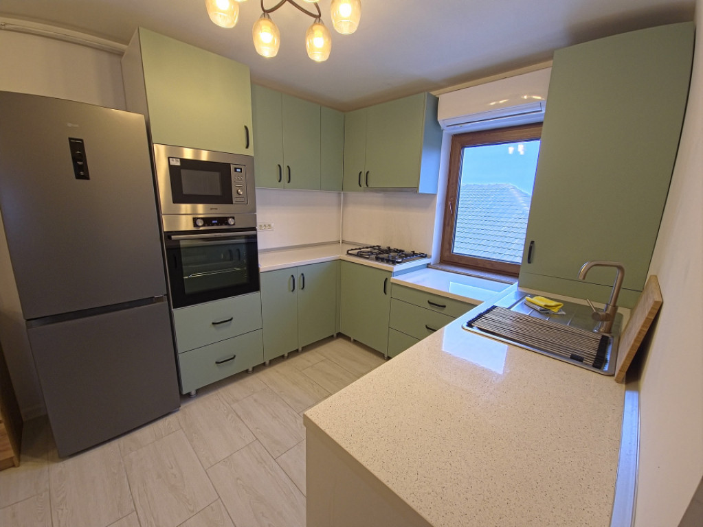 Haus Imobiliare vă propune spre vânzare un apartament cochet cu 3 camere, situat în localitatea Agigea, într-un imobil restrâns, cu regim mic de înălțime (subsol + 3 etaje). Blocul este organizat eficient, cu doar 2 apartamente pe nivel, iar la subsol regăsim boxe dedicate locatarilor. Apartamentul este amplasat la etajul 2 din 3, într-o scară curată și practică. Compartimentarea este funcțională și bine echilibrată: living cu bucătărie open-space 2 dormitoare baie cu duș terasă deschisă, cu acces din unul dintre dormitoare Locuința se vinde mobilată și utilată, exact așa cum se poate observa în fotografii. Un aspect extrem de important: Apartamentul este aproape nelocuit, fiind utilizat ocazional ca apartament de oaspeți, ceea ce se reflectă în starea foarte bună a finisajelor și a mobilierului. Suprafața utilă a apartamentului este de 49,4 mp, la care se adaugă terasa de 6,5 mp, rezultând o suprafață utilă totală de 55,9 mp. În preț sunt incluse: boxă la subsol în proprietate – 5,2 mp, bine compartimentată și închisă cu ușă loc de parcare în folosință în curtea imobilului Apartamentul dispune de centrală proprie pe gaze și încălzire în pardoseală, sistem implementat la nivelul întregului bloc, oferind confort termic excelent și costuri reduse pe timp de iarnă. O proprietate ideală atât pentru locuit, cât și ca investiție, situată într-o zonă liniștită, într-un imobil modern și aerisit. Id intern: P241039