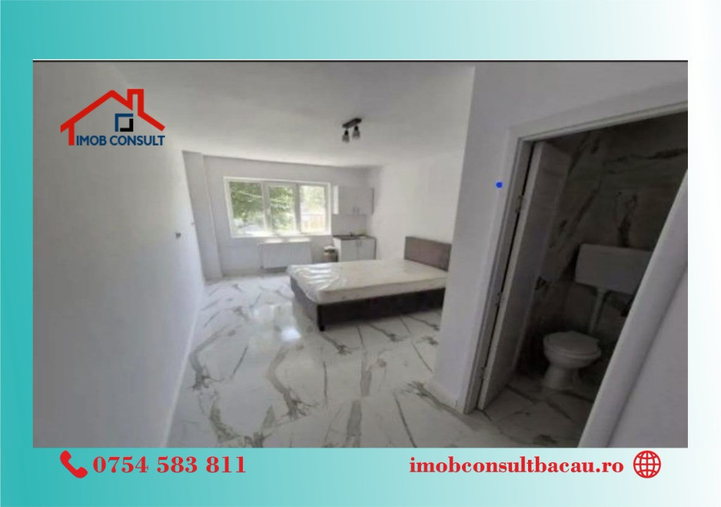Esti un tanar in cautarea primei sale locuinte? Avem exact ceea ce cauti! Iti prezentam o garsoniera proaspat renovata situata la parterul unui imobil cu 4 etaje pe Calea Moinesti. Detalii esentiale: - Suprafață: 26 mp; - Complet renovat; - In apropiere spatiu verde; - Mijloace de transport in comun; - Locație: Calea Moinesti, Bacău; Această garsonieră compactă de 26 mp, este perfectă pentru un trai confortabil și practic. Pentru detalii și vizionări, ne poți contacta la numerele de telefon: - Cosmin: 0754 583 811; - Corina: 0740.288.297, sau la sediul agenției noastre, Imob Consult Bacau, situat pe strada Banca Națională nr. 27 la intersecția cu Str. Neagoe Vodă, langa Irish Pub.