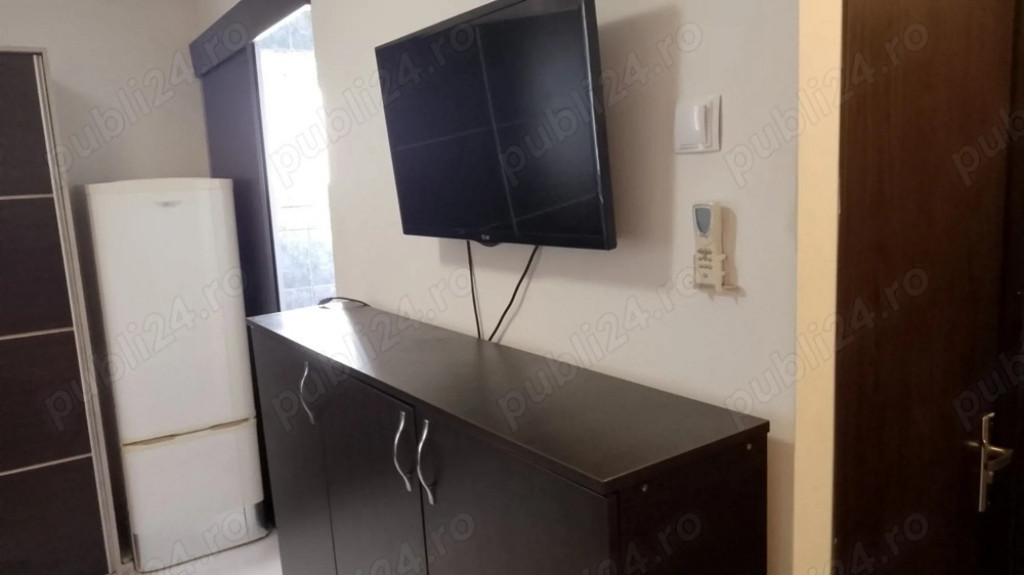 garsoniera piata Alba Iulia, langa rond - o straduta in spate, nu pe aglomeratul Bd Unirii. Modern mobilata, toate utilitatile, fara balcon, liniste, zona verde, etaj 4 4, gresie, faianta, termopan, TV plasma, wireless, masina spalat, frigider, aer conditionat, usa metalica, contorizat, bloc modernizat, 240 euro fix + garantie. Garsoniera e mica dar cocheta si spatiul de 20mp este foarte bine folosit. Blocul arata foarte bine, este anvelopat, civilizat cu scara curata. Acces facil mijloace de transport, 150metri RATB, metrou 15min - real.
