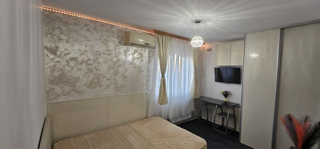 Garsoniera de închiriat în zona piata Alba Iulia, lângă bulevardul Unirii, garsoniera este renovata integral, este la prima închiriere, Blocul este reabilitat termic, dispune de centrală termica pe gaz, suplimentar garsoniera este dotata cu boiler electric cu wifi clasa energetica A, garsoniera este renovata total, totul nou, fiind la prima închiriere. Garsoniera este dotata cu masina de spalat rufe,combina frigorifica, TV smart,pat de mijloc, internet wireless, mobilier nou din MDF,finisaje de calitate, aer condiționat, contorizata total pe apa,curent,caldura,etc. Costurile de întreținere mici. Plata 1+1. Preț fix